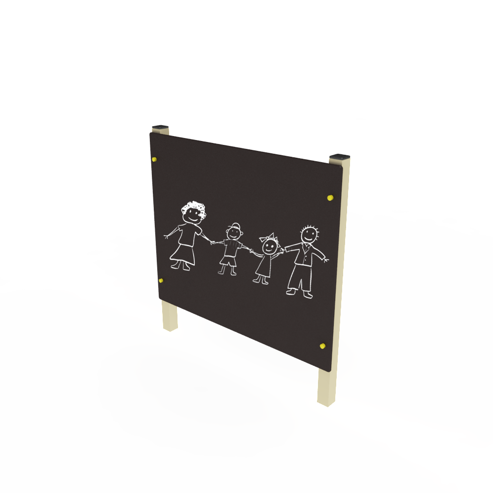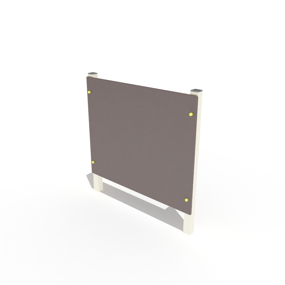 Выполнена в виде сборной конструкции, которая состоит из 2-х стоек и щита. Стойки выполнены из стального профиля 60х60 мм, длиной 1800 мм. Щит - из ламинированной фанеры толщиной 18 мм. Габариты щита 1500х1220х18 мм. В целях безопасности все отдельно выступающие детали и резьбовые соединения закрыты пластиковыми колпачками, края болтов закрыты пластиковыми заглушками.