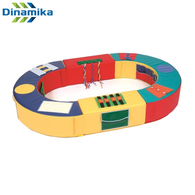 Уникальность этого манежа в многообразии его использования. Его можно применять с целью ограничения пространства маленького ребенка, а яркие шнуровки и детали манежа не позволят скучать малышу. Благодаря тому, что манеж состоит из отдельных легких деталей, ребенок может использовать их в игровой деятельности, в конструировании различных построек для игр, соединять детали и разбирать манеж самостоятельно.