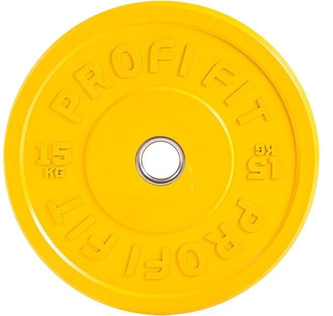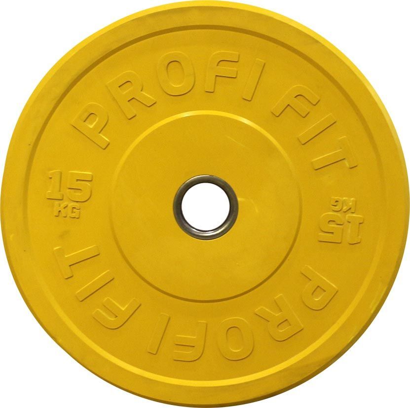 Тренировочный диск для штанги каучуковый, цветной D51 мм PROFI-FIT 15 кг рассчитан на интенсивное коммерческое использование в зоне функционального тренинга с сохранением эксплуатационных характеристик.