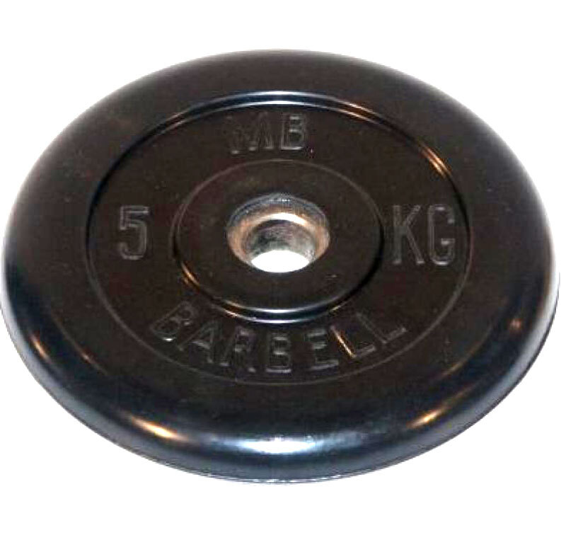 Диск Barrbell обрезиненный литой для гантелей и штанг MB-PltB26-5 Предназначен для штанг, гантелей и тренажеров. Вес диска 5 кг Внутренний диаметр 26 мм. Втулка - металл. Диск цельнометаллический, выполнен из стали. Высокая точность изготовления, максимальное отклонение веса +- 50 г. Внешнее покрытие резина черного цвета. Для сцепления резины со сталью, при обрезинивании используется термоклей. Используется в основном на соревнованиях различного уровня и тренажерных залах. Для производства дисков используются высококачественные материалы. Обрезиненные диски удобны, эстетичны, не гремят и не царапают пол.