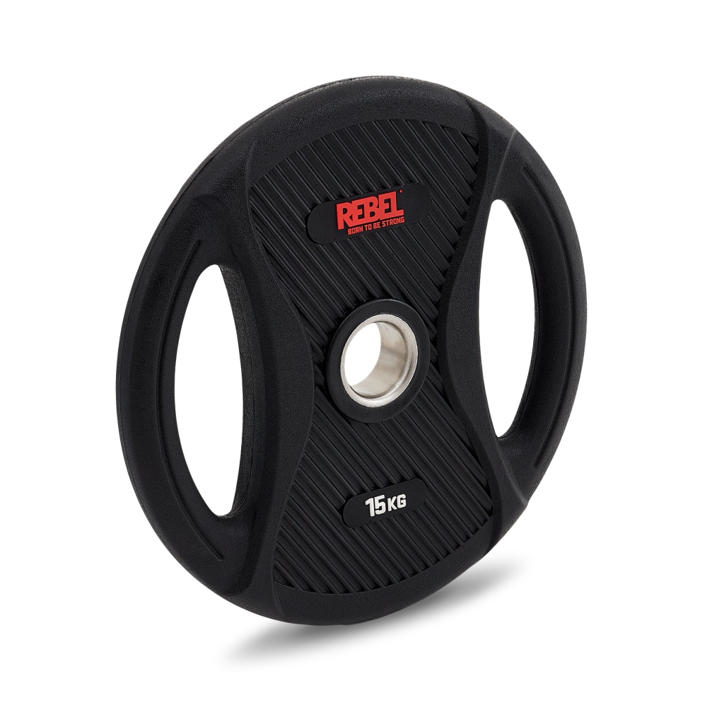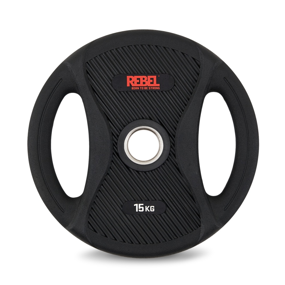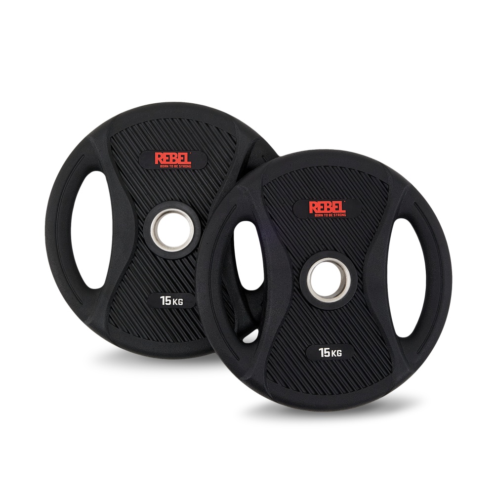 Диски олимпийские обрезиненные с двумя хватами 15 кг REBEL R-PVP-15-PAIR (пара)