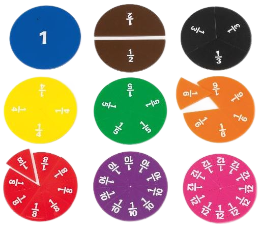 Набор «Круги. Дроби» предназначен для наглядного изучения понятий "часть" и "целое", для знакомства с дробями, демонстрации равенства, сложения и вычитания с дробями.