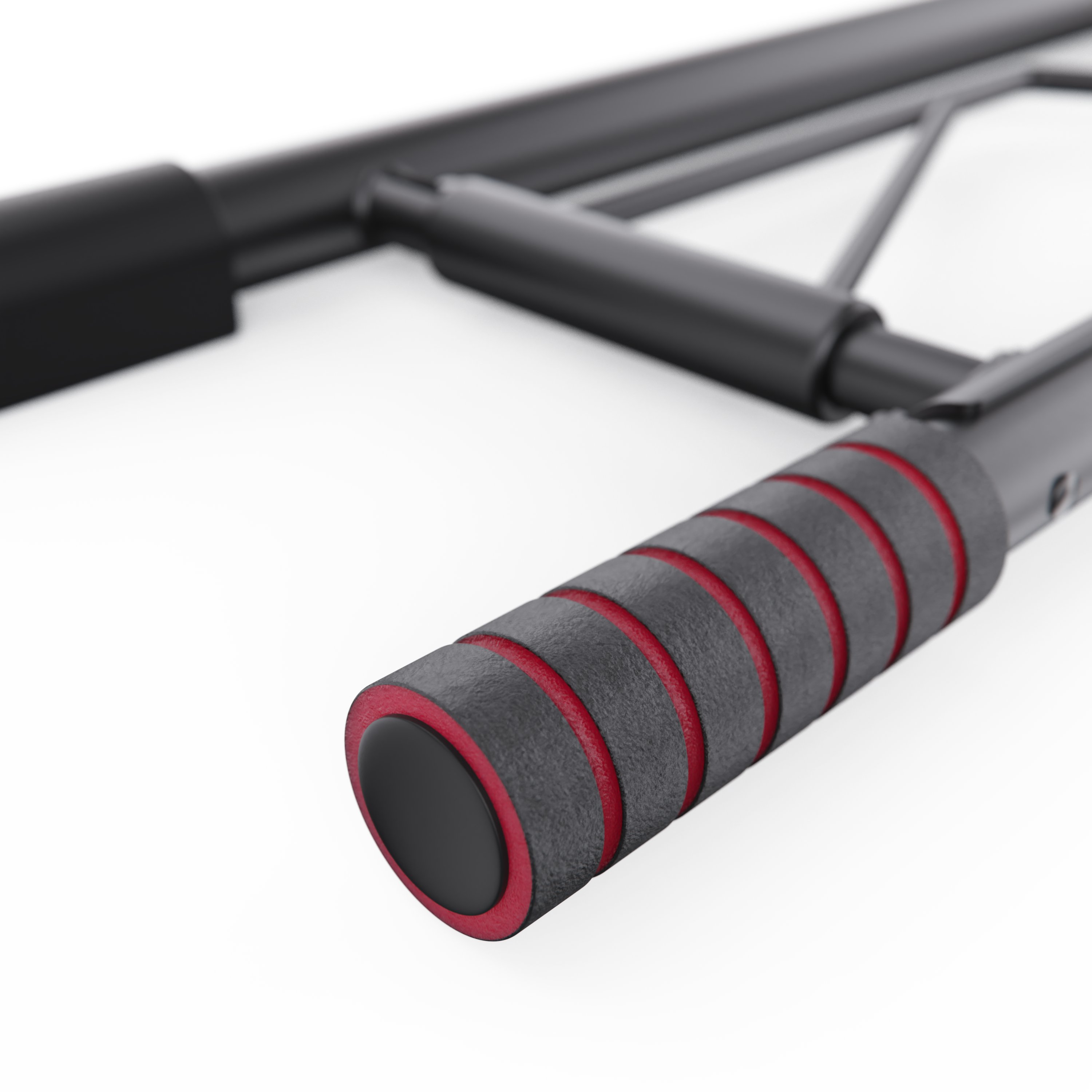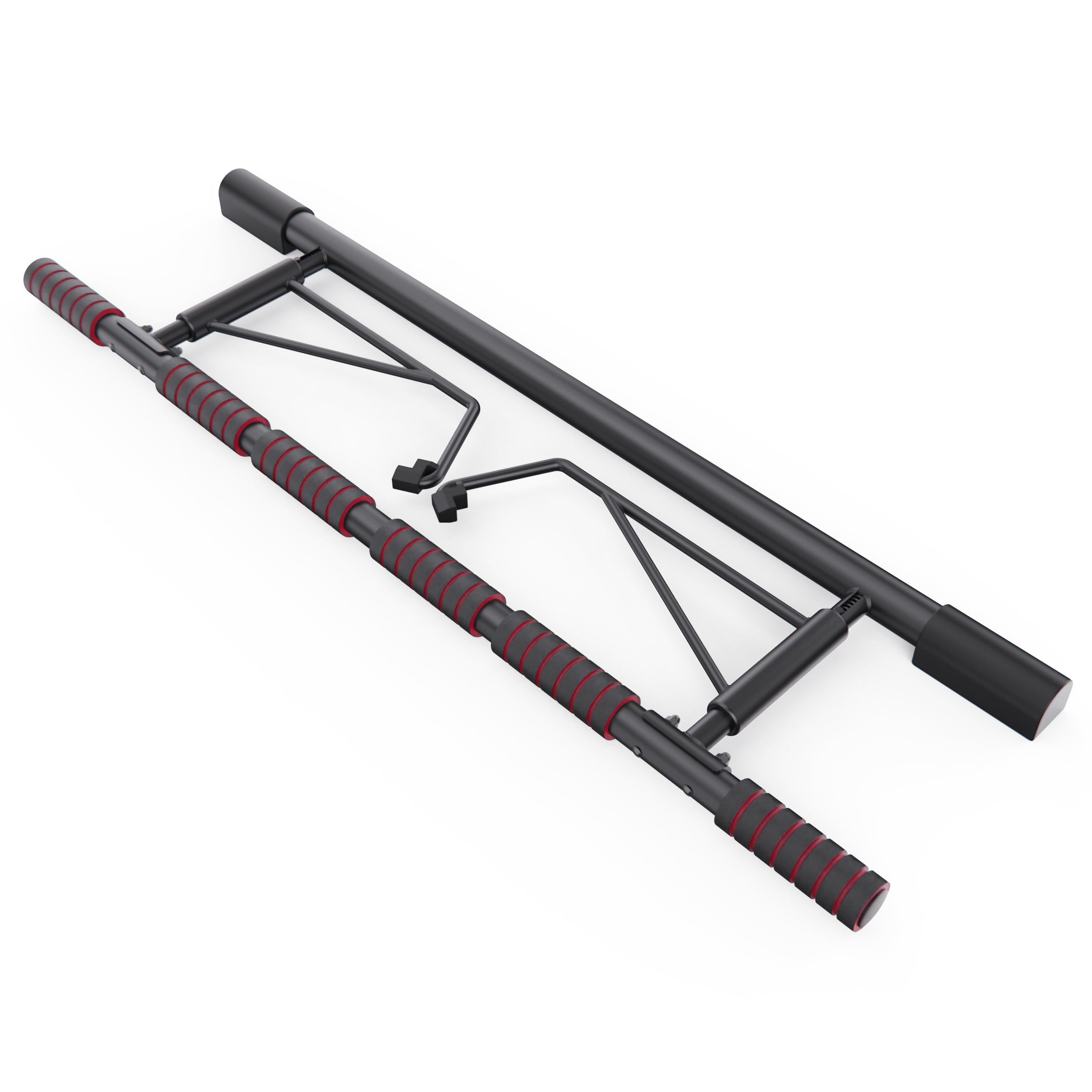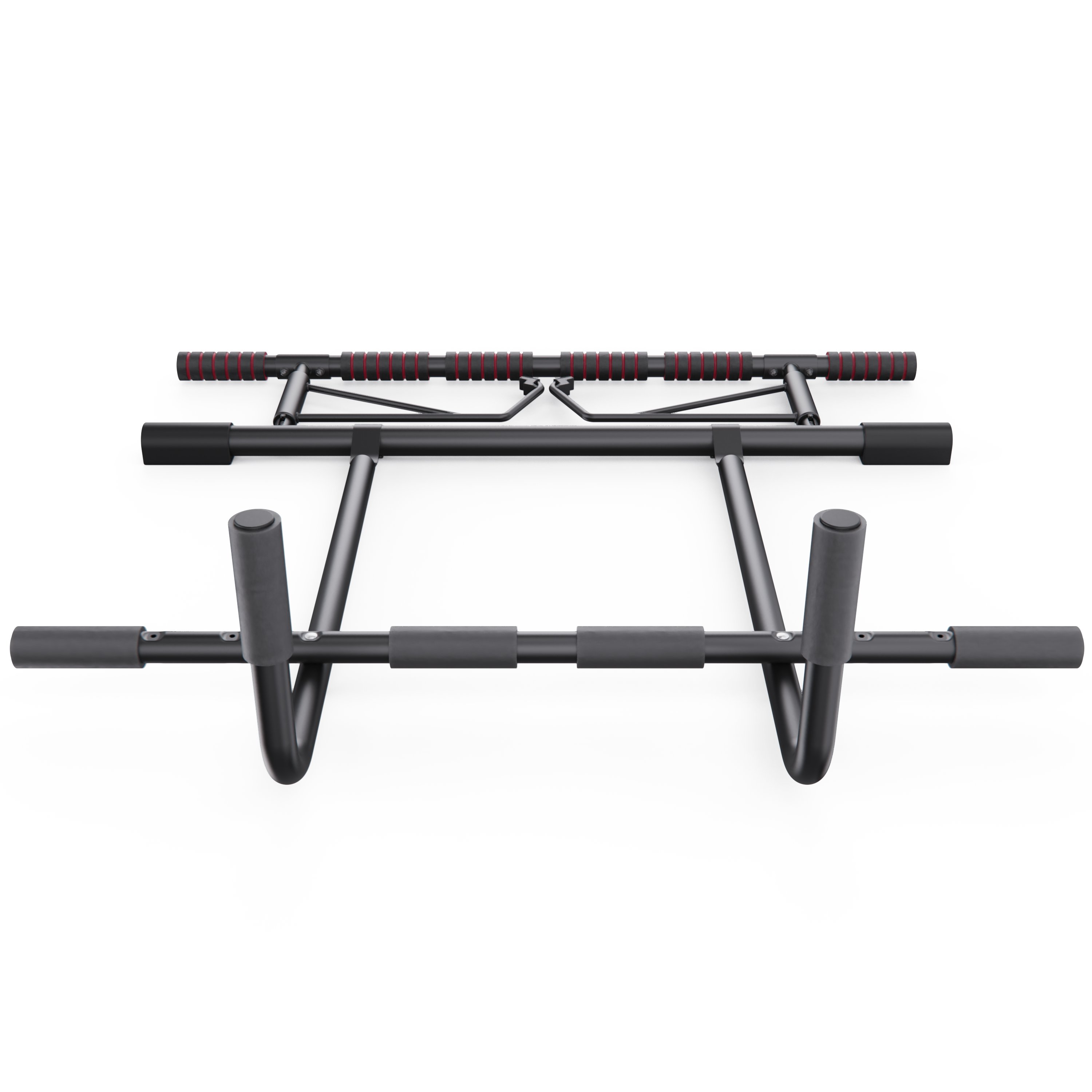 Модель рассчитана на максимальный вес пользователя 130 кг. Конструкция выполнена из прочной высокоуглеродистой стали с элементами из пенопласта и полипропилена, что обеспечивает надёжность и долговечность при ежедневных тренировках. Мягкие ручки и регулируемые дверные защитные накладки создают комфорт и индивидуальную подгонку под любую дверную раму шириной от 69 до 101 см.