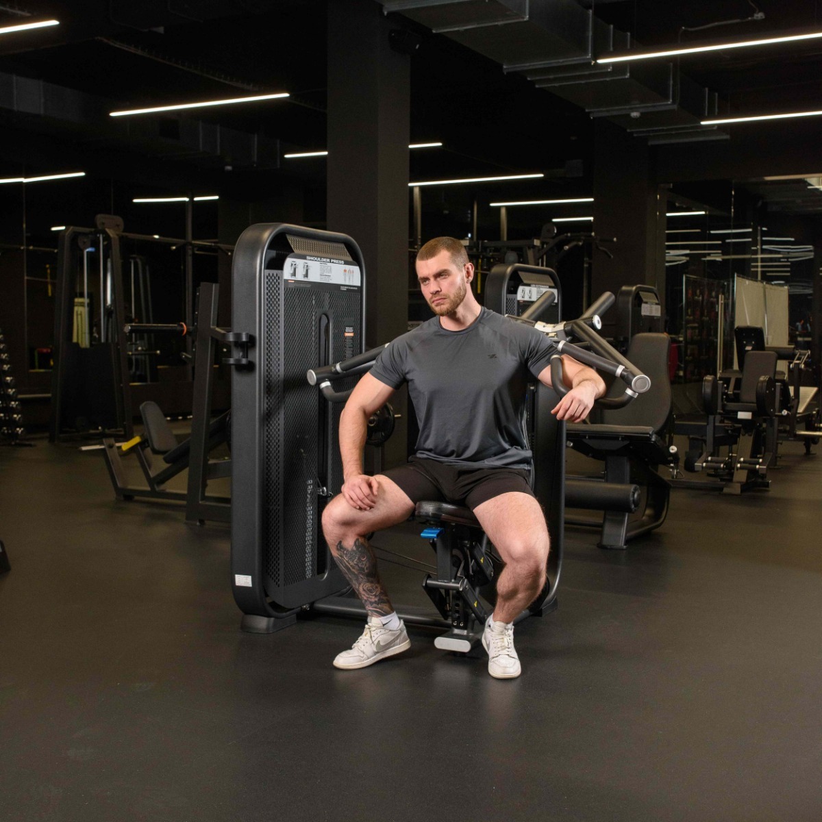Профессиональный тренажер для коммерческого использования E7006 Жим от плеч предназначен для изолирующих упражнений на дельтовидные мышцы.