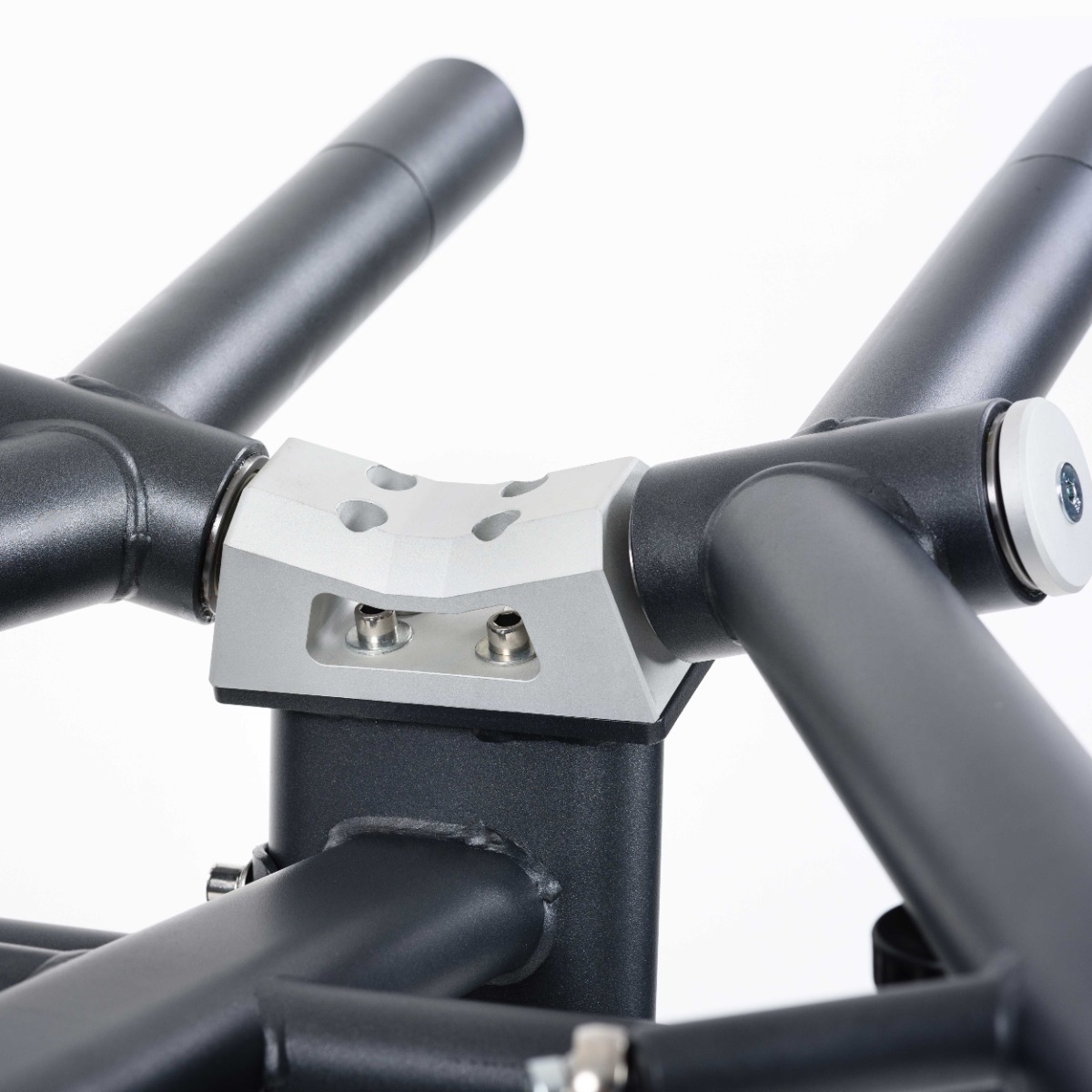 Две пары многопозиционных нескользящих рукояток выполнены из металлической трубы с резиновым неабсорбирующим влагу покрытием и декоративными заглушками-наконечниками, зафиксированными болтом.