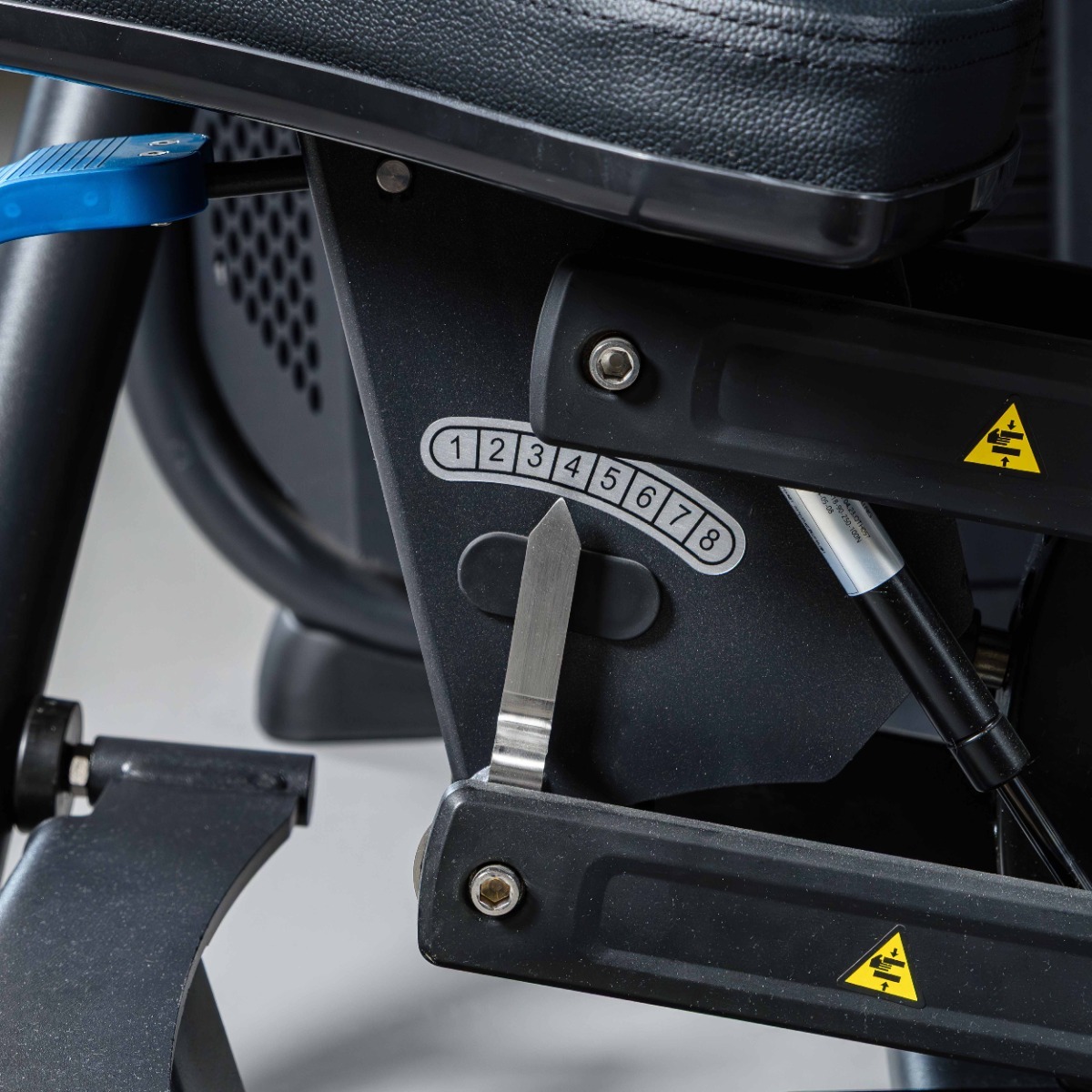 Регулируемая в трёх положениях спинка и регулируемое при помощи сдвоенной системы газовых упоров в восьми положениях анатомическое сиденье велосипедного типа выполнены из вспененного полиуретана с обивкой из премиальной искусственной кожи.