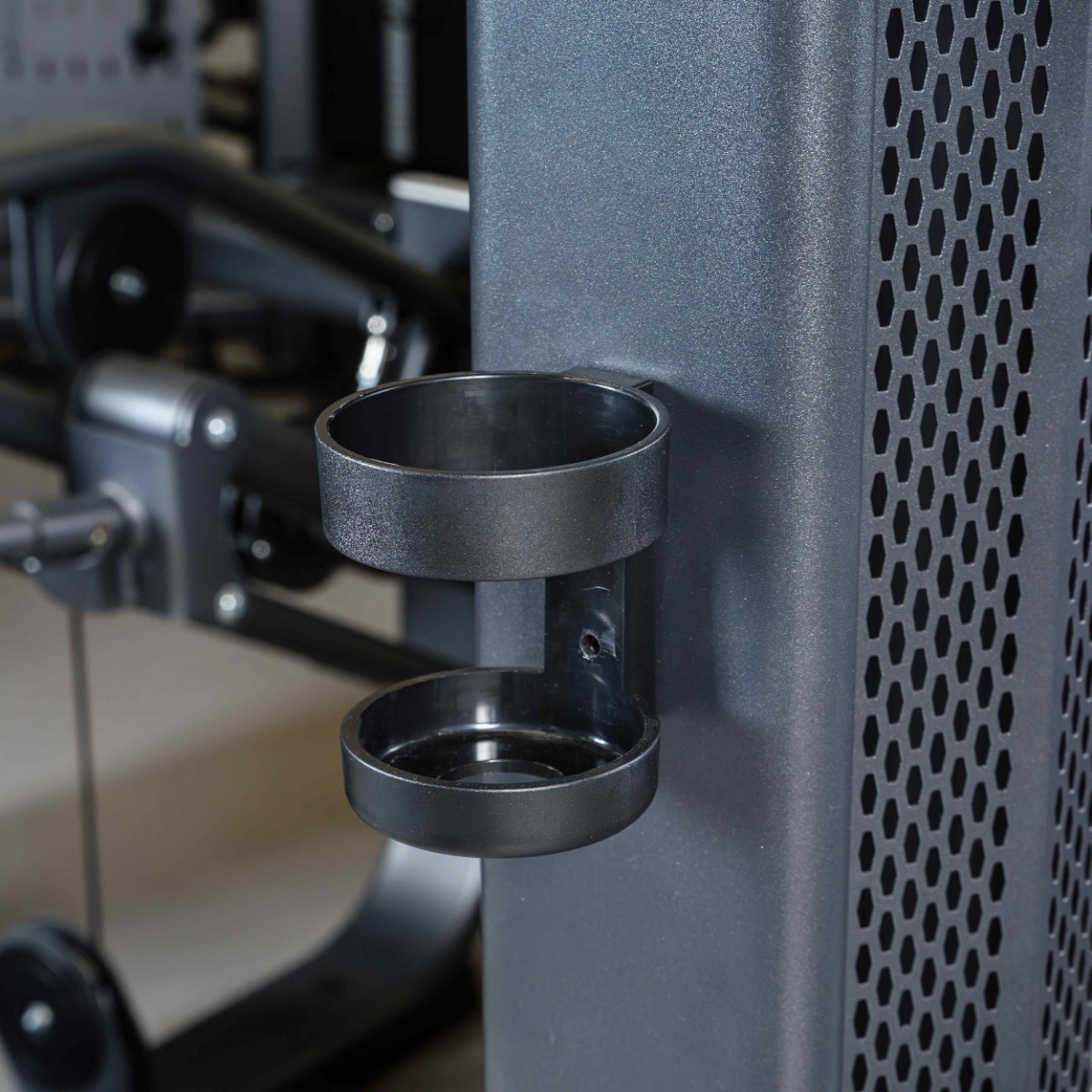 На раме тренажера закреплён пластиковый держатель для личных вещей.