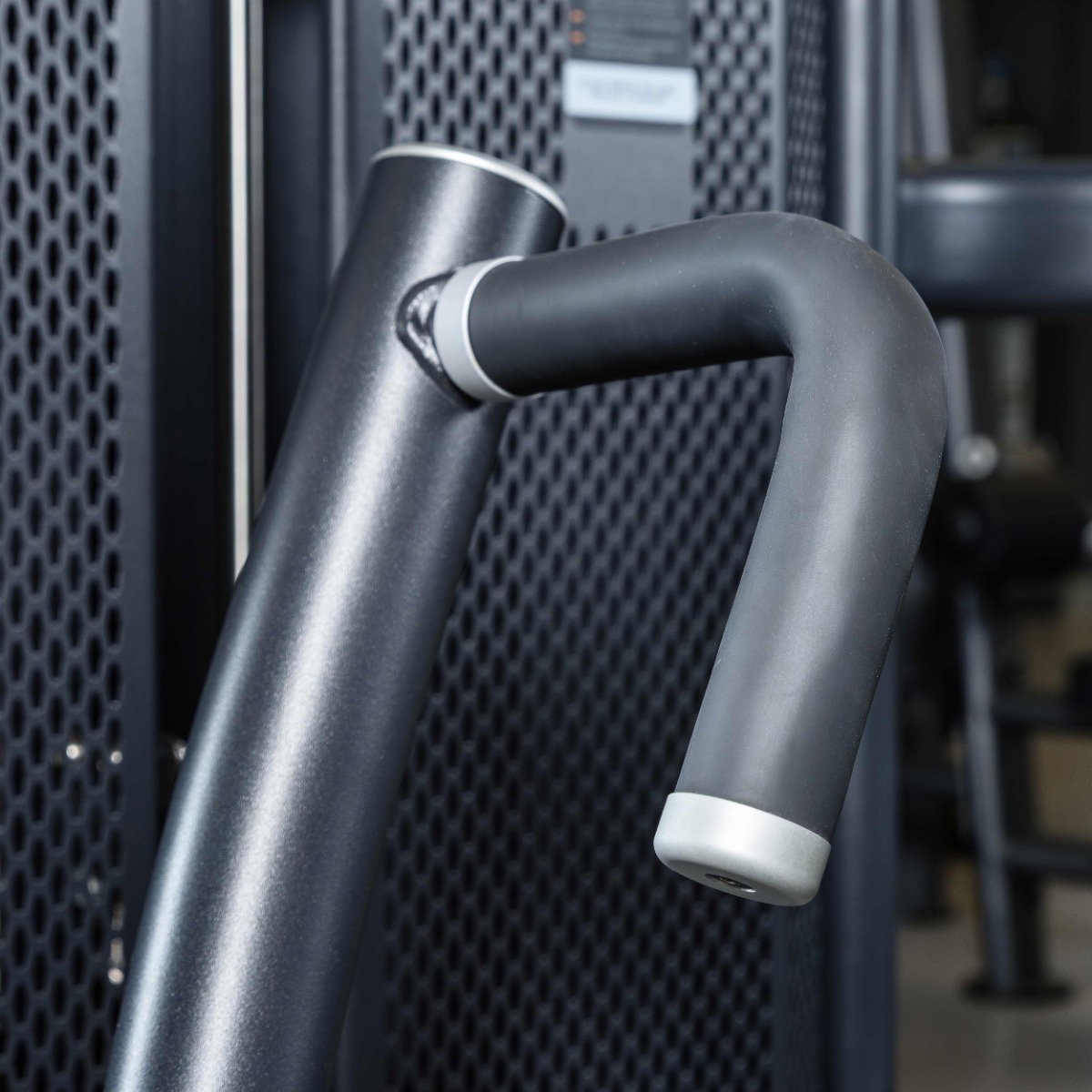 Прорезь в защитном кожухе грузоблока для доступа к регулировке нагрузки шлифованная с завальцованными внутрь гранями по всему периметру для безопасного доступа к весовому стеку и обеспечения дополнительной жёсткости рамы грузоблока.