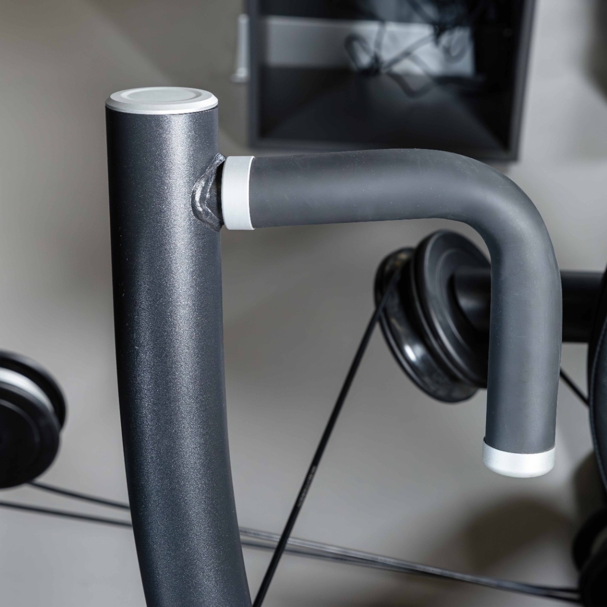 Две пары двухпозиционных нескользящих рукояток выполнены из металлической трубы с резиновым неабсорбирующим влагу покрытием и декоративными заглушками-наконечниками, зафиксированы болтом.