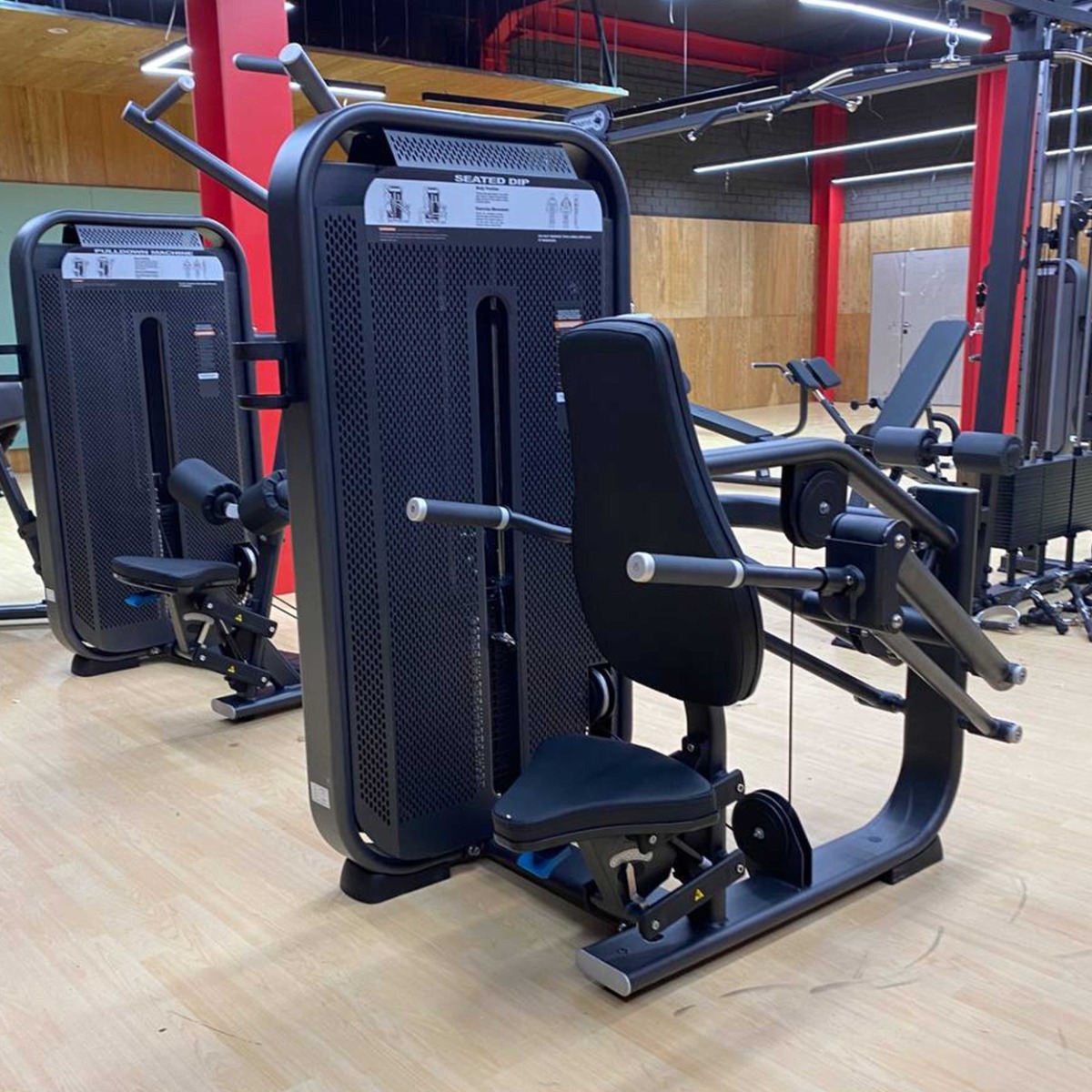 Профессиональный тренажер для коммерческого использования E7026 Трицепс-машина. Имитация отжиманий предназначен для изолирующего упражнения на трицепсы в положении сидя.