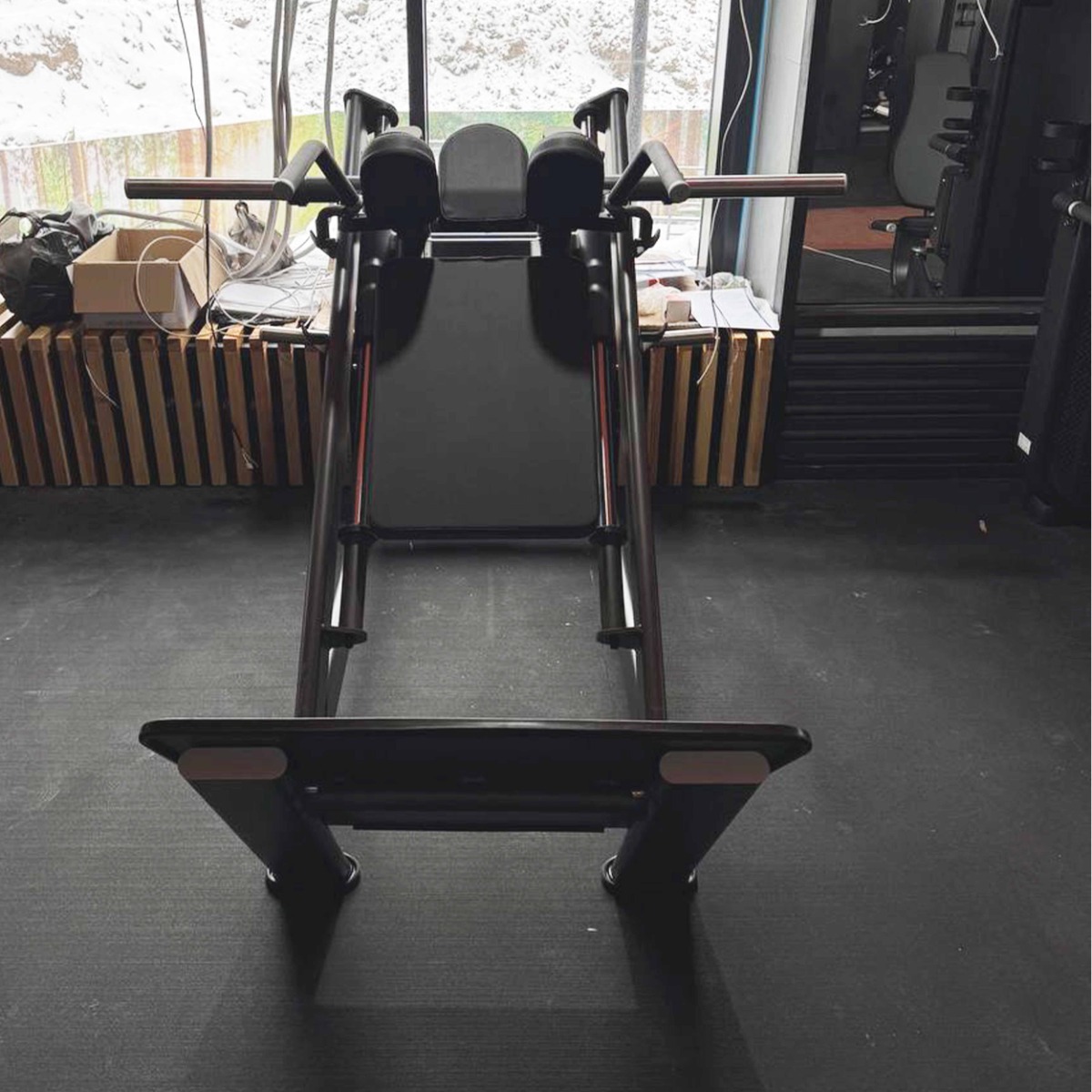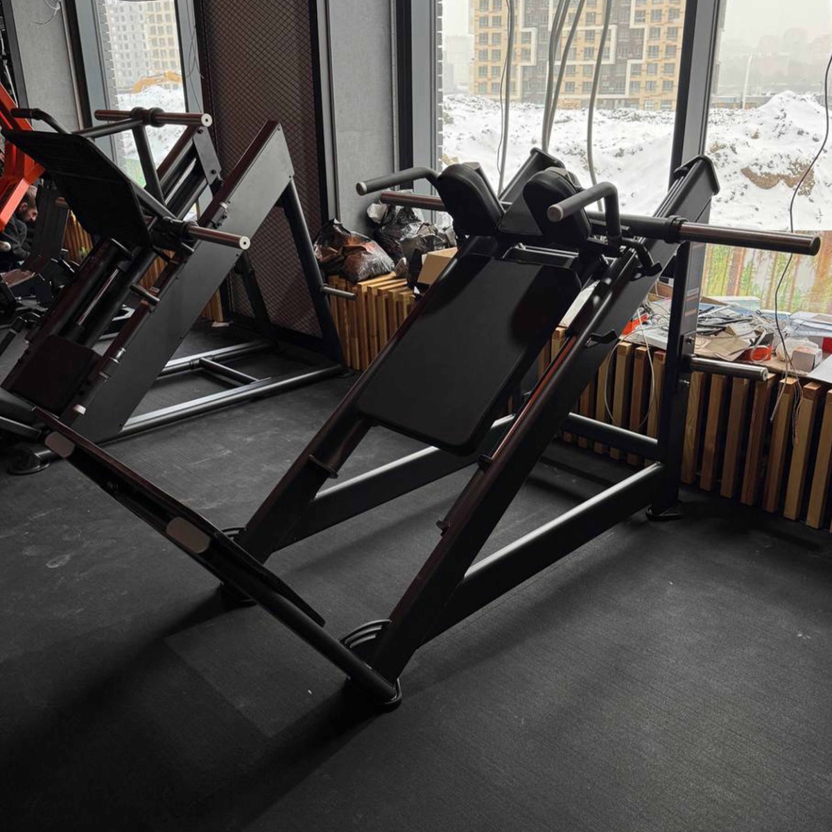 Профессиональный тренажер для коммерческого использования E7057 Гакк Машина предназначен для проработки квадрицепсов, больших ягодичных мышц и икр.