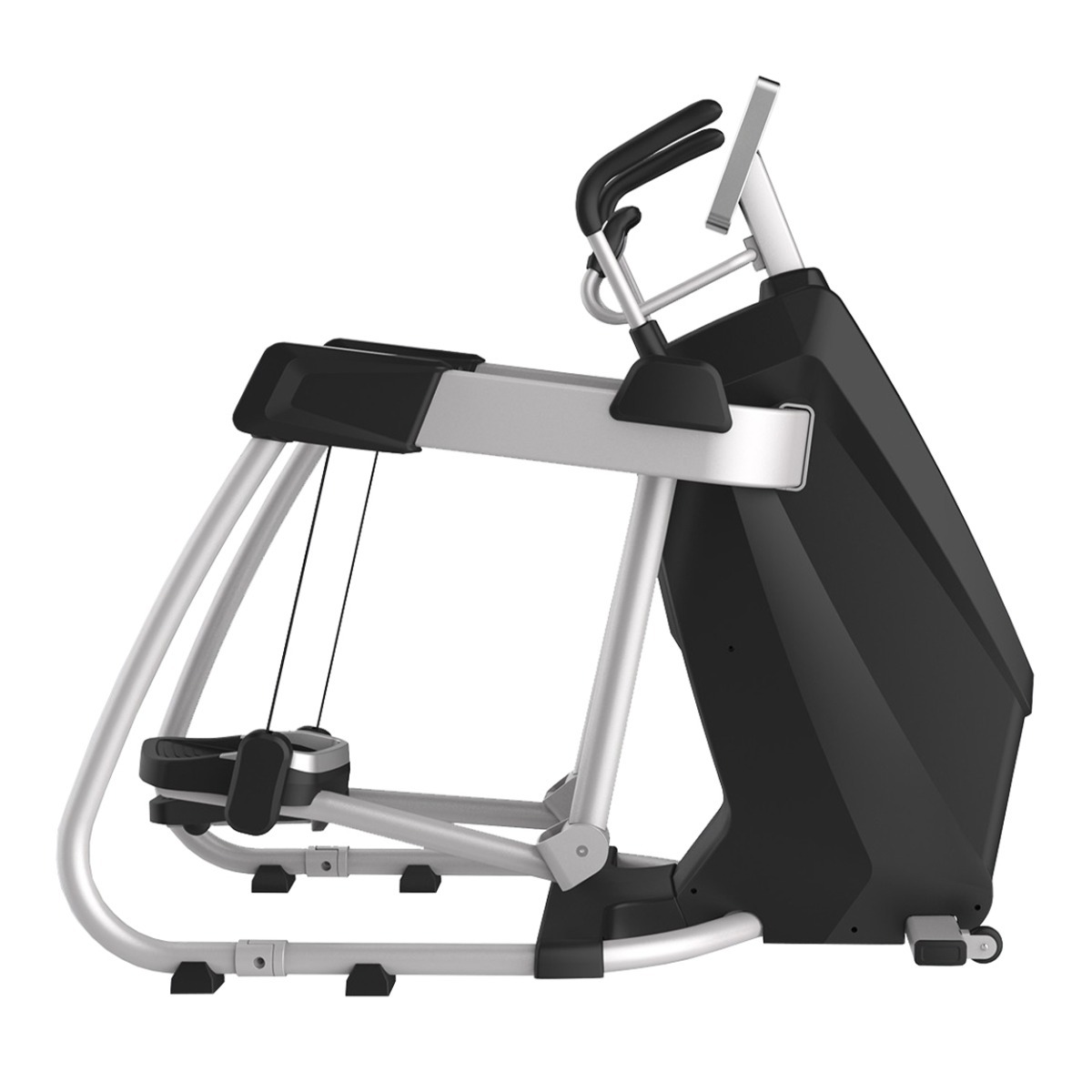 Адаптивный тренажер сочетает в себе эллиптический тренажер с заданной траекторией шага, беговую дорожку без ударной нагрузки на суставы и степпер благодаря регулировке шага и угла наклона от 0% до 15%.