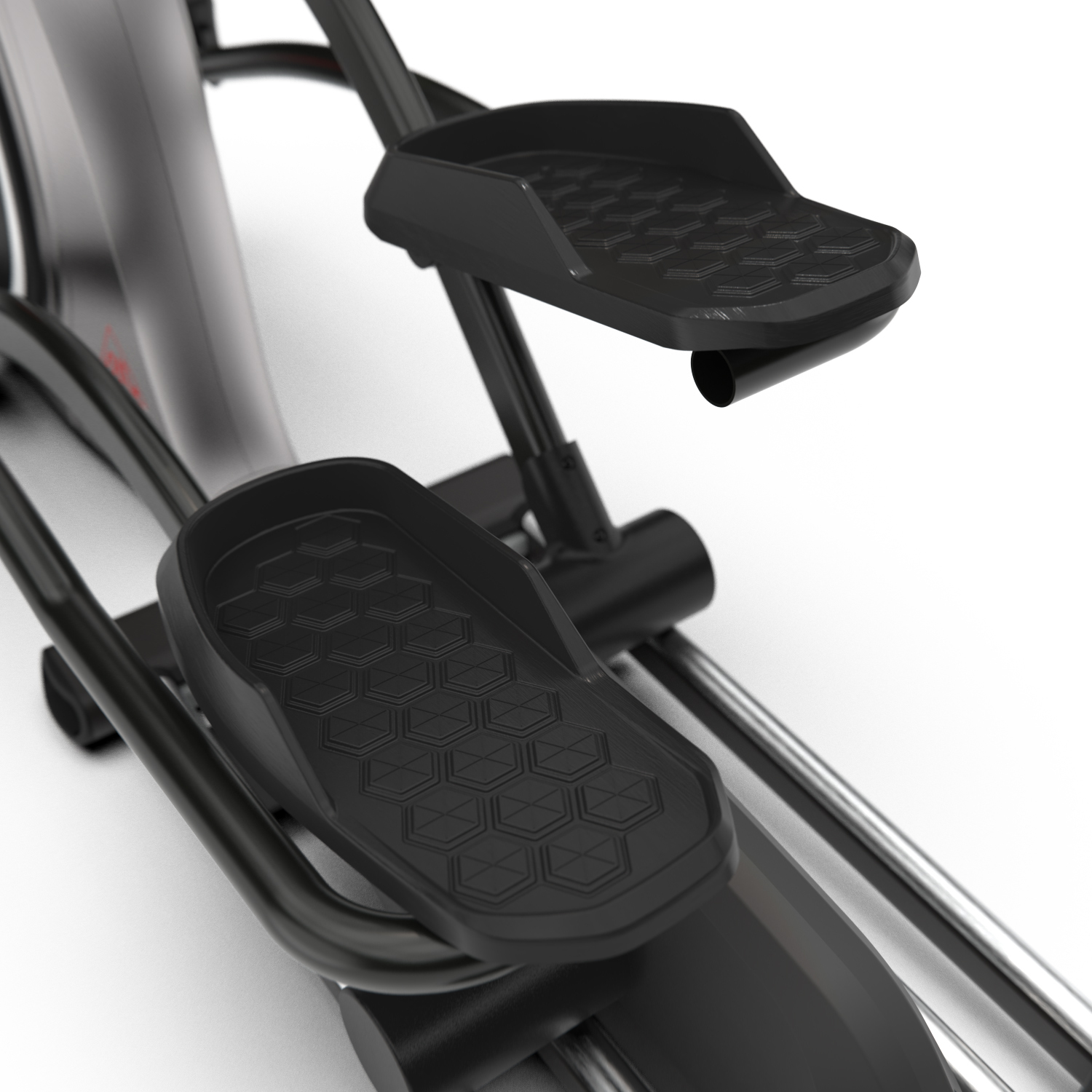 Максимальный вес пользователя — 150 кг. Длина шага — 50,8 см. Педали имеют нескользящее покрытие и бортики для безопасности. Тренажёр удобно перемещать за счёт транспортировочных роликов и ручки. Компенсаторы неровности пола позволяют устанавливать на неровную поверхность. Шнур питания и адаптер входят в комплектацию.
