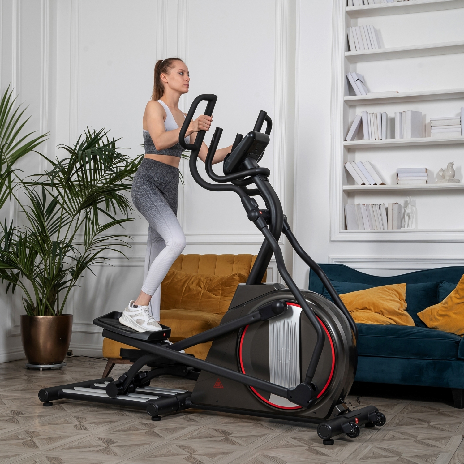 Мощная рама тренажера, усиленная конструкция из стального профиля, позволит заниматься пользователю весом до 135 кг. Транспортировочные колеса в передней части обеспечивают свободное перемещение тренажера по комнате. Задний стабилизатор с регулировкой положения на неровной поверхности.