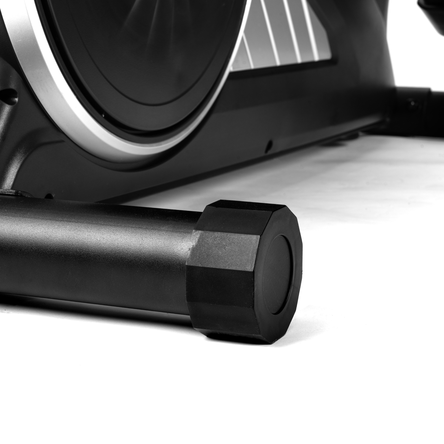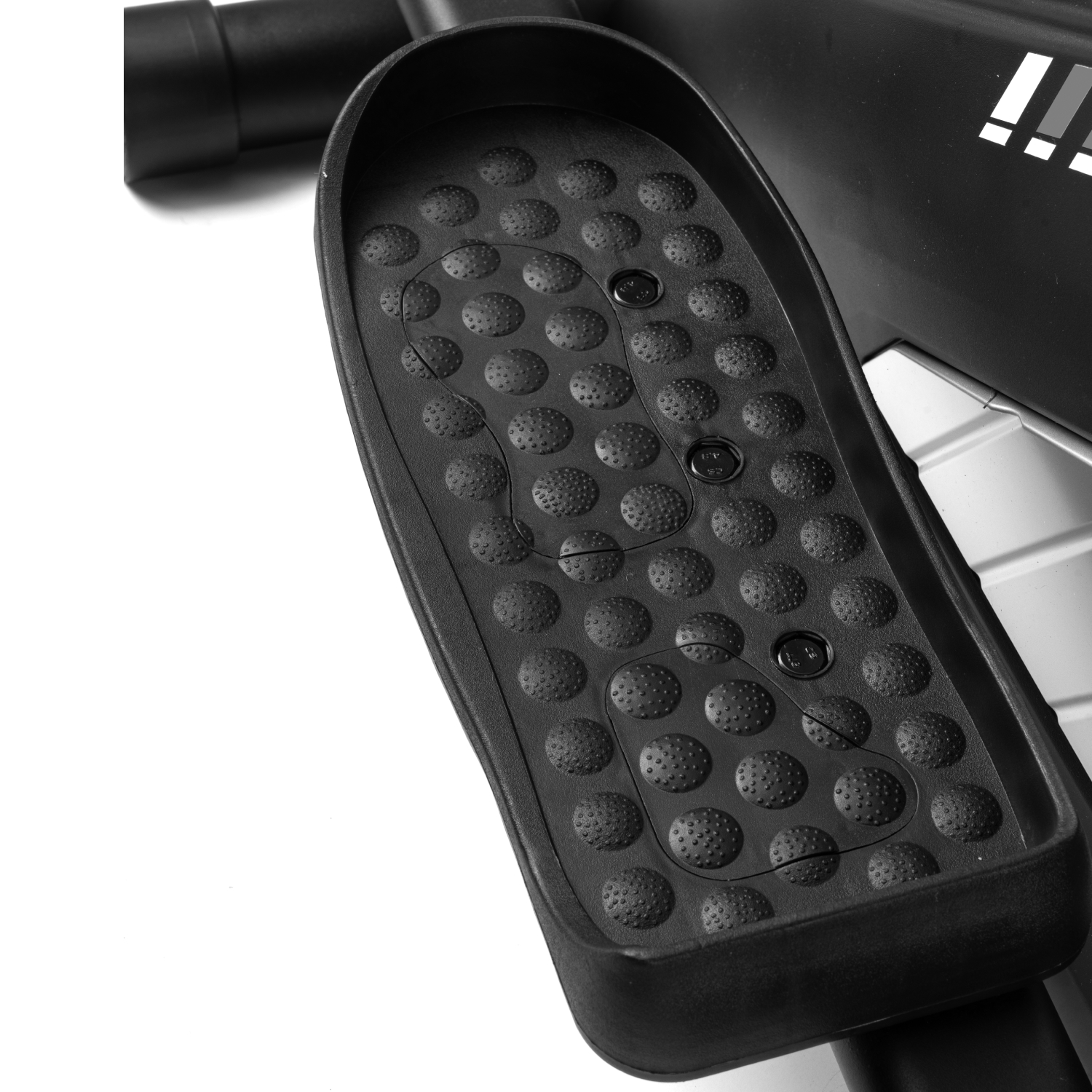 Рифлёные педали с нескользящей поверхностью обеспечивают надёжную фиксацию ног во время тренировки, предотвращая соскальзывание и повышая безопасность. Удобный хват во время занятий обеспечивают поручни: расстояние между длинными поручнями составляет 54,3 см, а между короткими — 22,5 см, что делает тренировку комфортной и устойчивой.