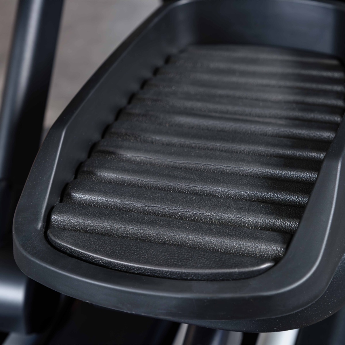 Полноразмерные педали тренажера длиной 370 мм, шириной 185 мм оснащена рифлёными амортизирующими накладками из ЭВА для исключения соскальзывания стопы и надежной фиксации положения ног при выполнении упражнения.
