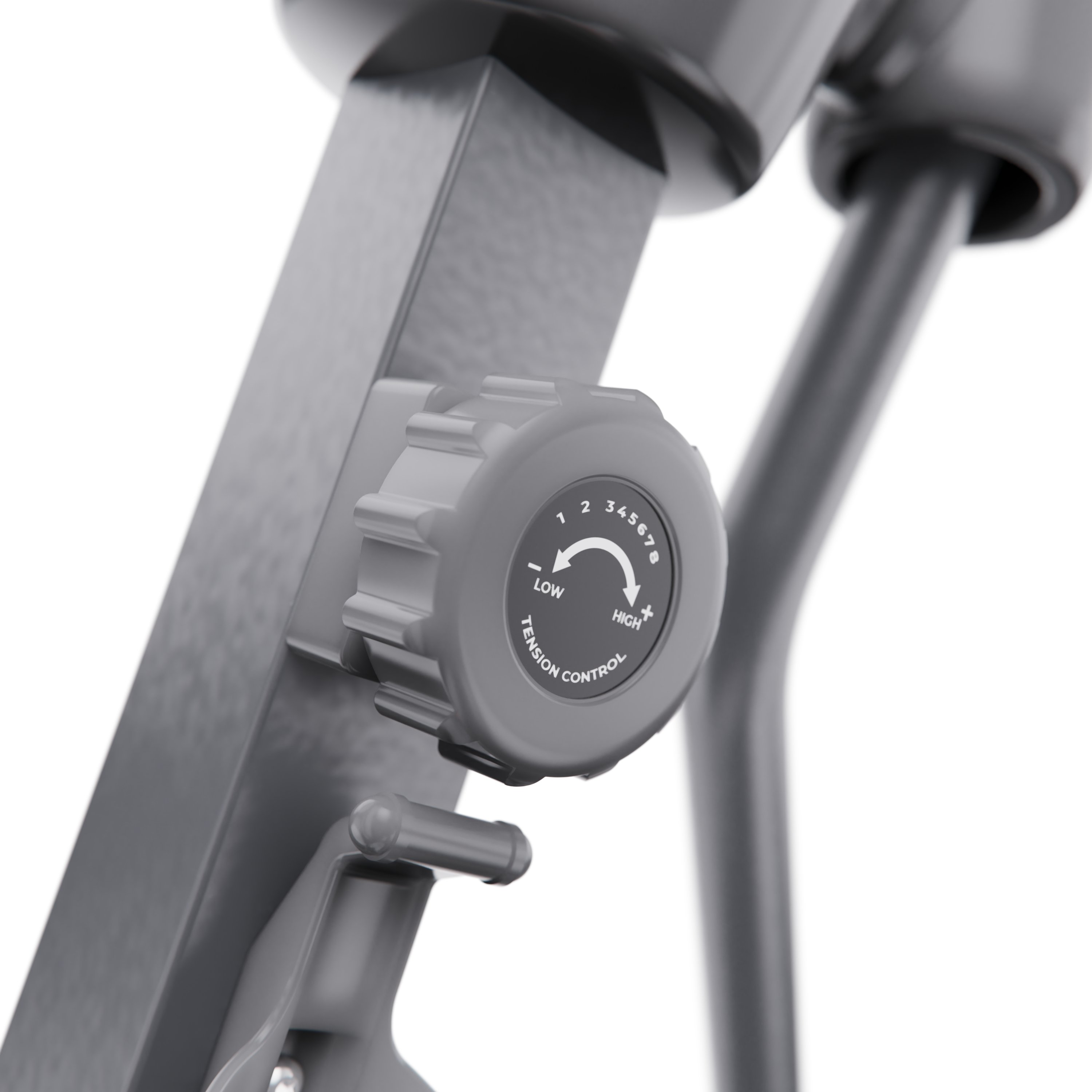 Модель способна выдержать пользователя весом до 120 кг. Тренажёр оснащён электромагнитной системой нагрузки, которая обеспечивает максимально точную и бесшумную регулировку сопротивления. Механическая регулировка сопротивления с 8 уровнями позволяет точно настраивать интенсивность тренировки, а увеличенный инерционный вес маховика 15 кг способствует плавной и стабильной работе тренажёра, создавая комфортные условия для длительных и эффективных тренировок.