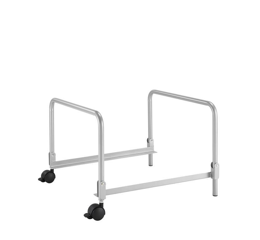 У основания 2 металлических колеса с блокирующим механизмом для удобной транспортировки готовой системы хранения.