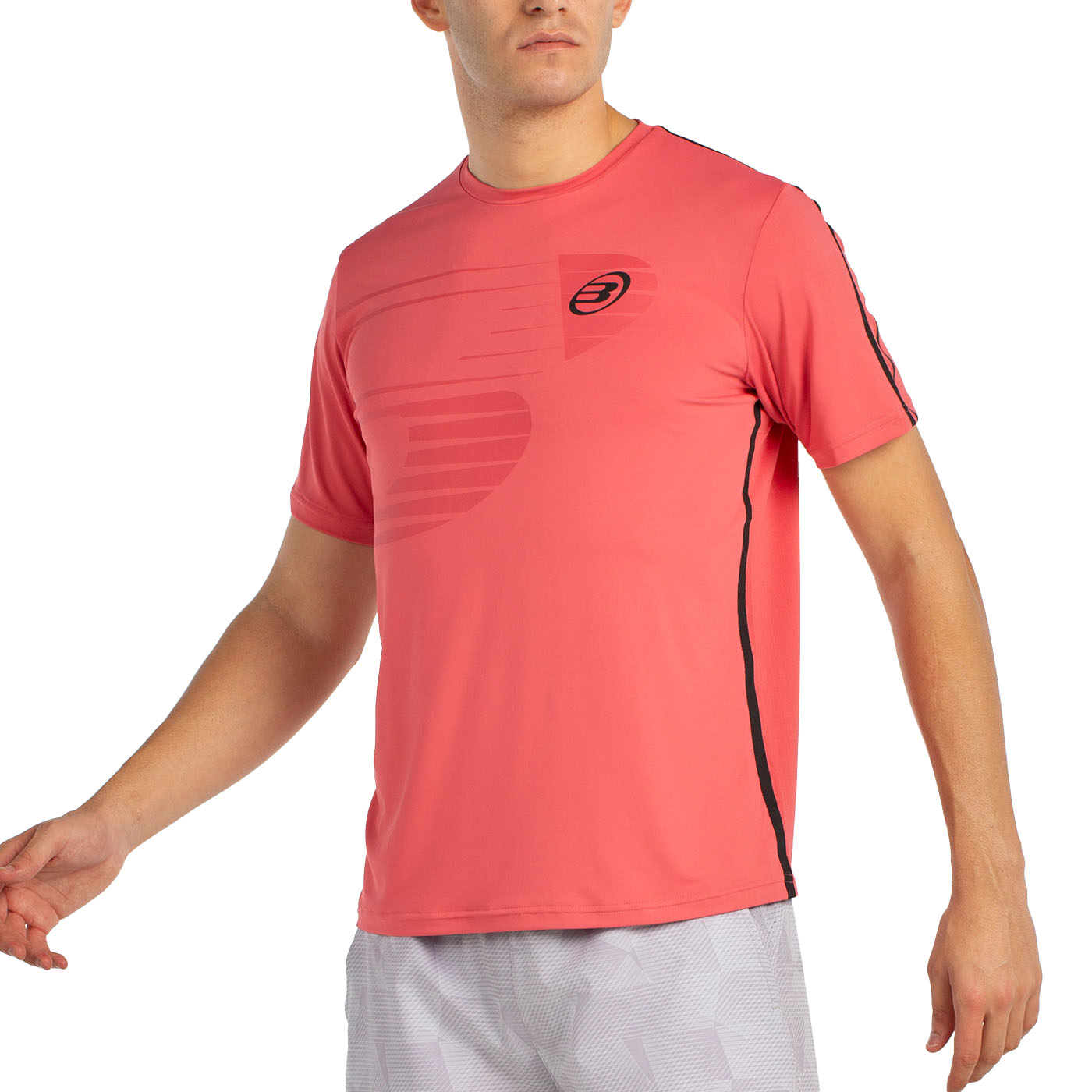 Стильная мужская футболка Moeche из однотонного полиэстерового материала с добавлением эластана спереди и сетчатого сзади.<br> Футболка имеет термосварные манжеты на рукавах и по бокам, лазерную перфорацию на спине для большей воздухопроницаемости, прорезиненную позиционную графику и логотип спереди.<br> Материал: полиэстер, эластан