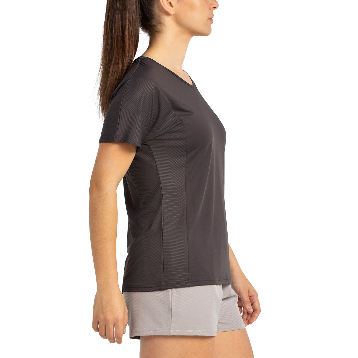 Футболка с короткими рукавами пошита из лёгкого однотонного полиэстера с добавлением спандекса и отделкой Drynamic, которая обеспечивает быстрое высыхание и комфорт. Футболка имеет боковые вставки в виде зигзагообразных линий и перфорацию на спине для лучшей циркуляции воздуха. Прорезиненный логотип спереди.<br>