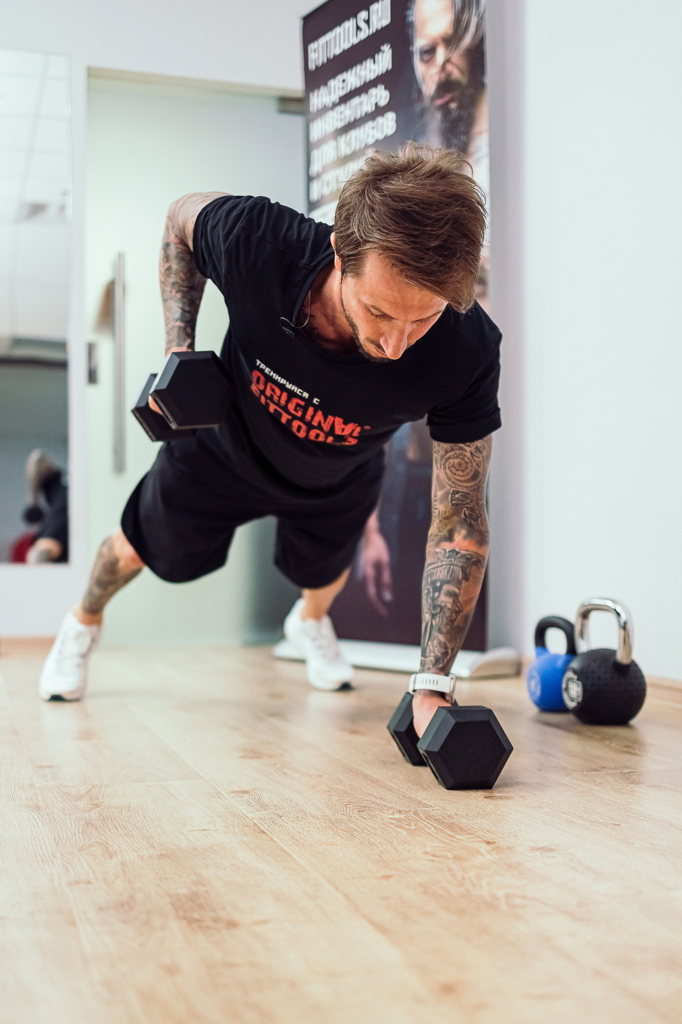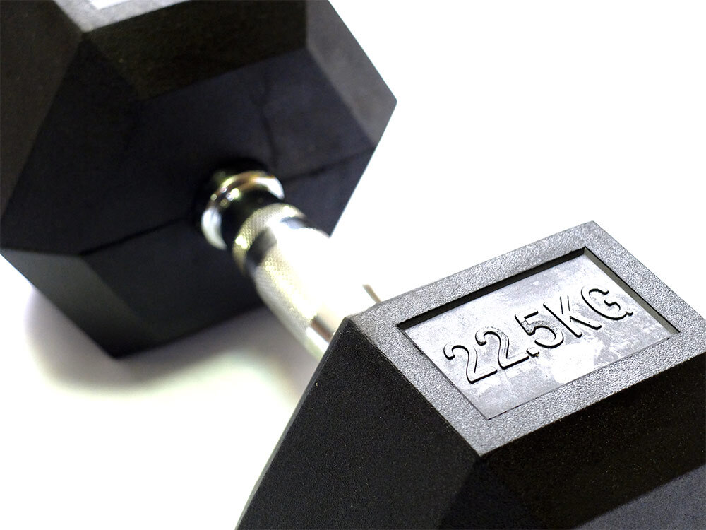 Гантель 22,5 кг Original FitTools выполнена в форме гексагона, что обеспечивает оптимальное сцепление с полом и ваш снаряд не укатится.