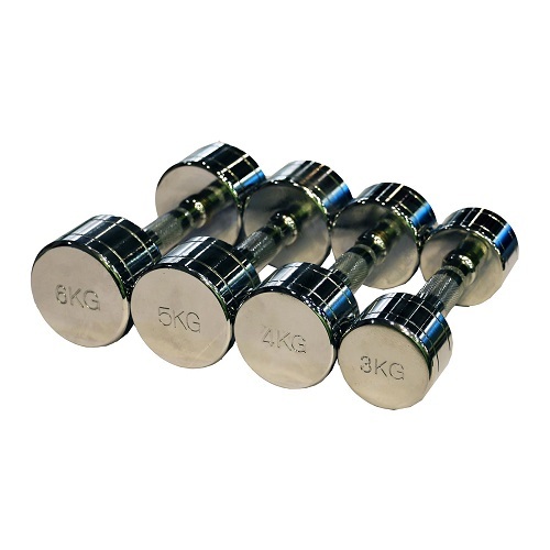 Гантель 8 кг, цельнолитые весовые диски, накатка на эргономичной рукоятке.