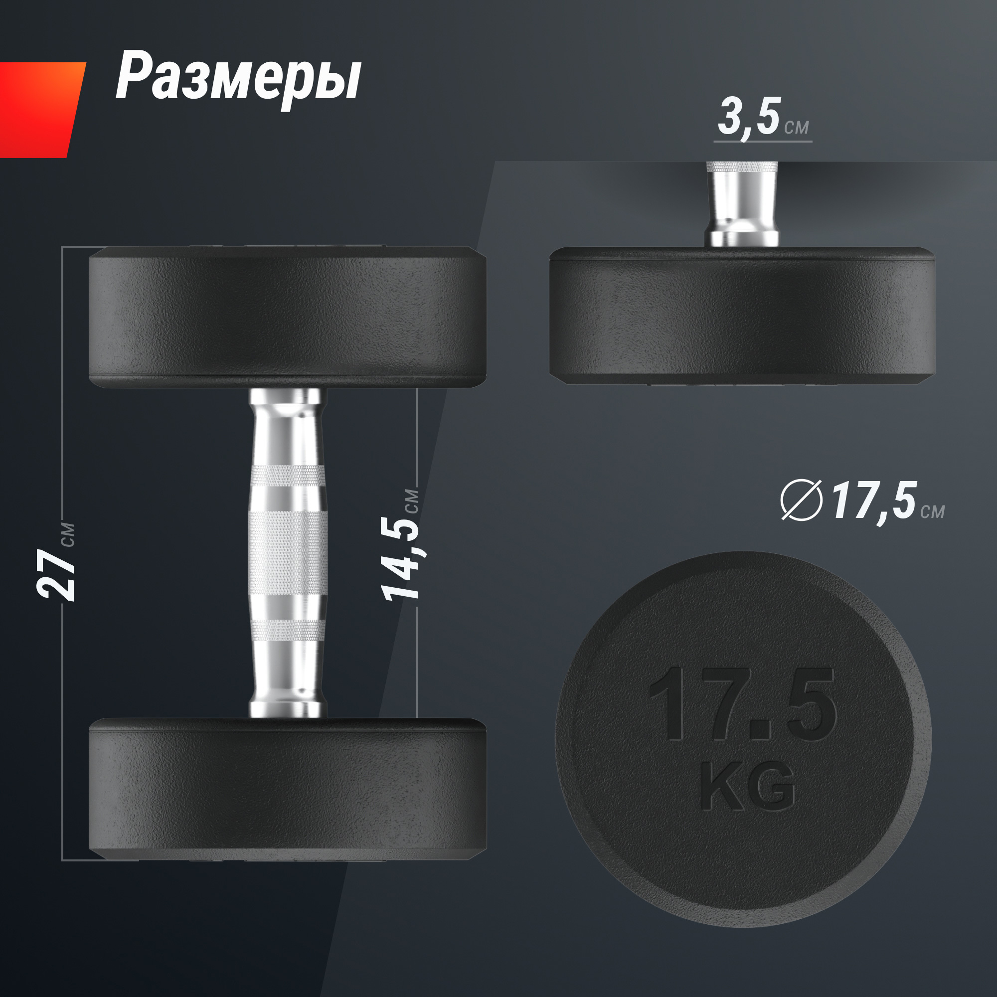 Гантель UNIX Fit PRO круглая обрезиненная 17,5 кг, 2 шт.