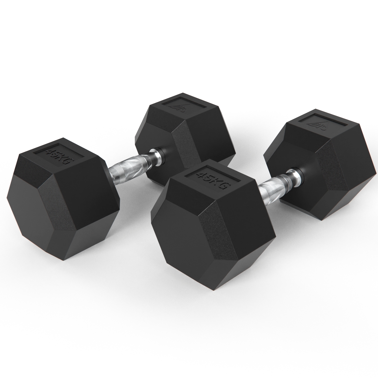 Гантель обрезиненная с хромированной ручкой. Вес гантели 45 кг, в комплекте 2 штуки (пара).