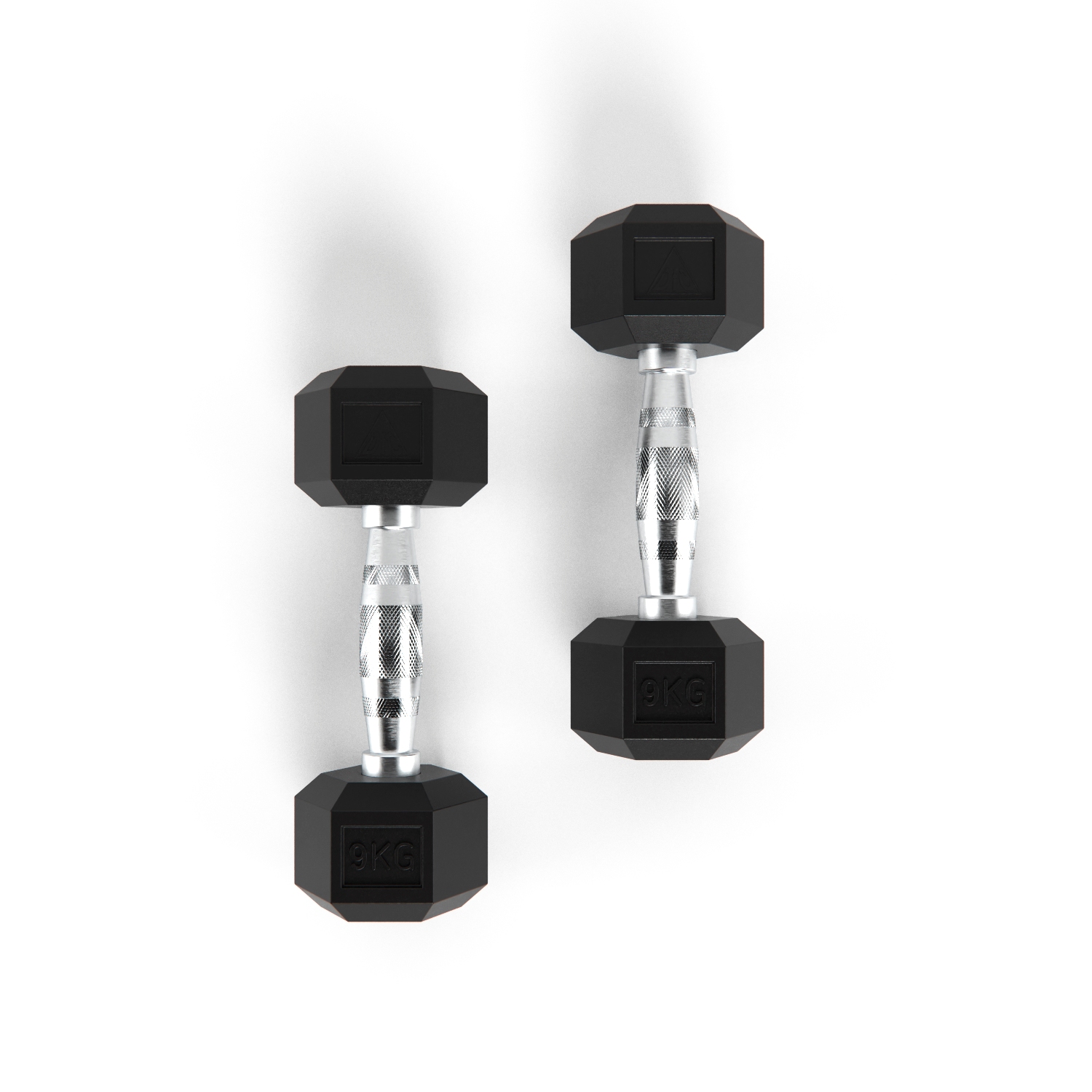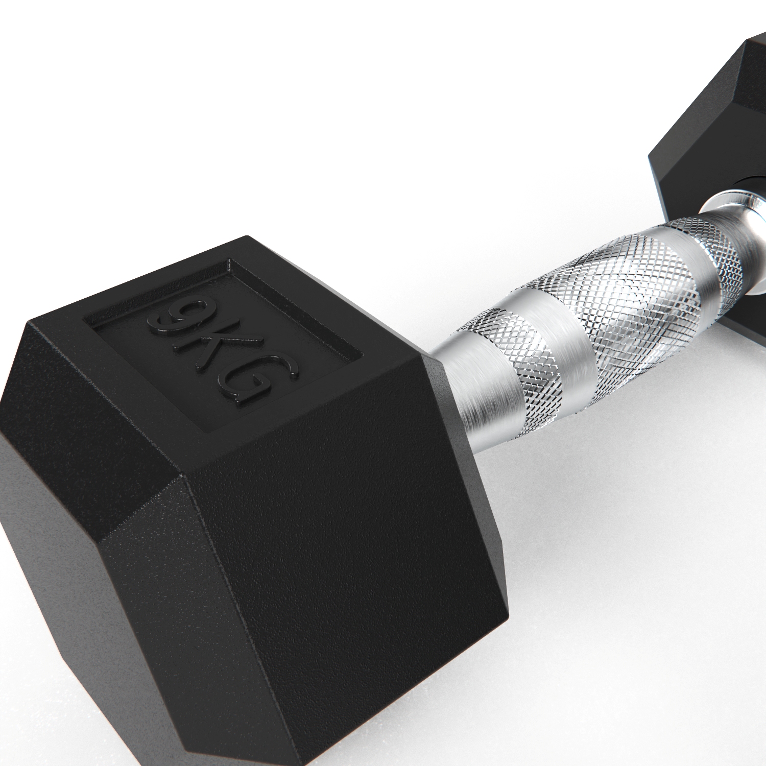 Гантель обрезиненная с хромированной ручкой. Вес гантели 9 кг, в комплекте 2 штуки (пара).