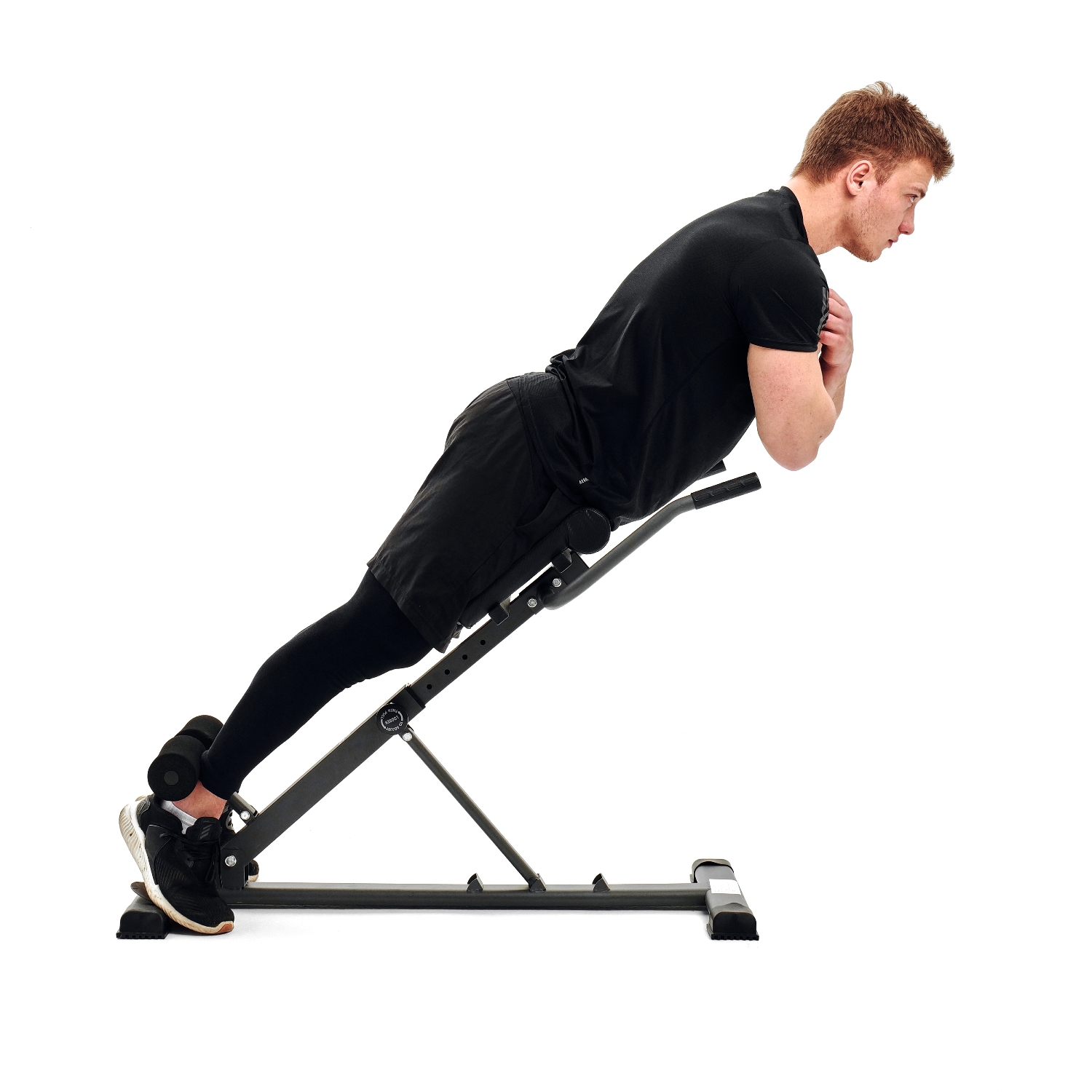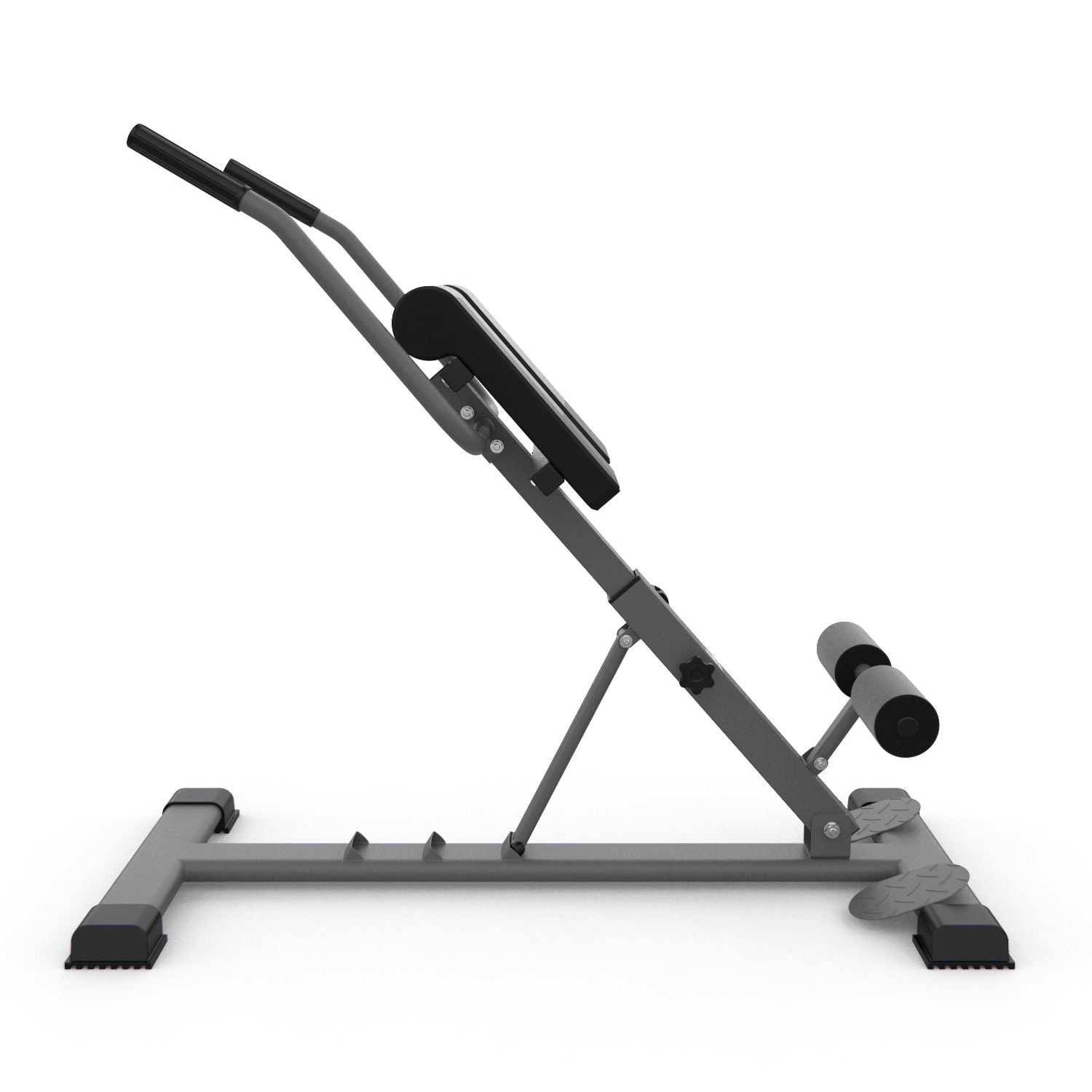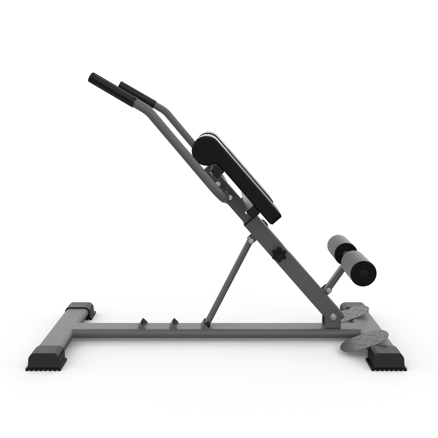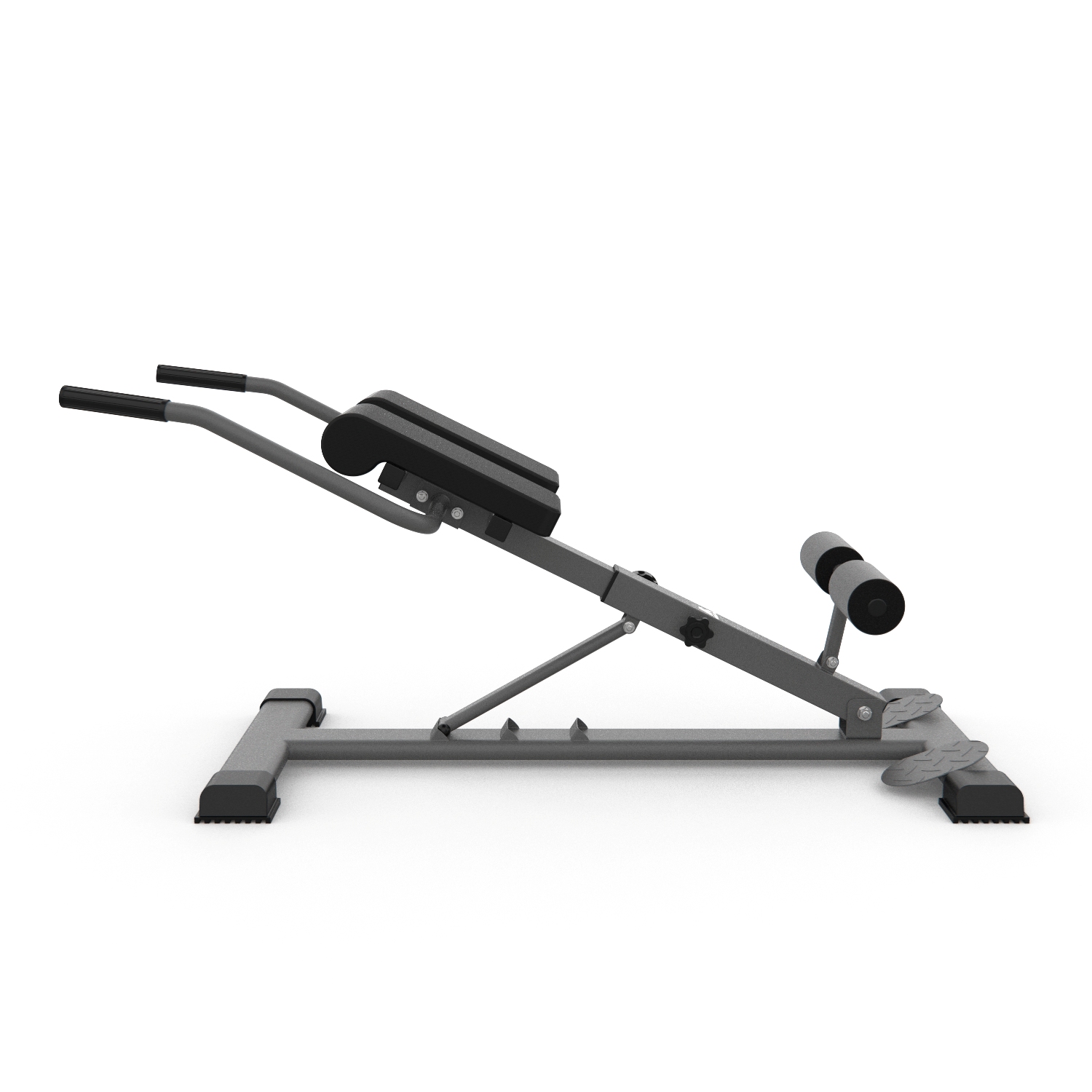 Гиперэкстензия легко регулируется без дополнительных инструментов. Доступны три уровня наклона рабочей поверхности, что расширяет возможности использования тренажера: 28, 32 и 45°. По высоте подушки регулируются на 7 уровней.