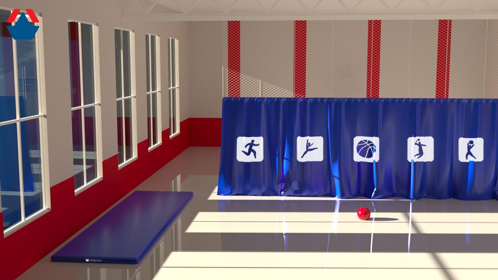 Например, с одной стороны разделительной перегородки могут проходить занятия волейболу или баскетболу, а на другой половине зала по настольному теннису.
