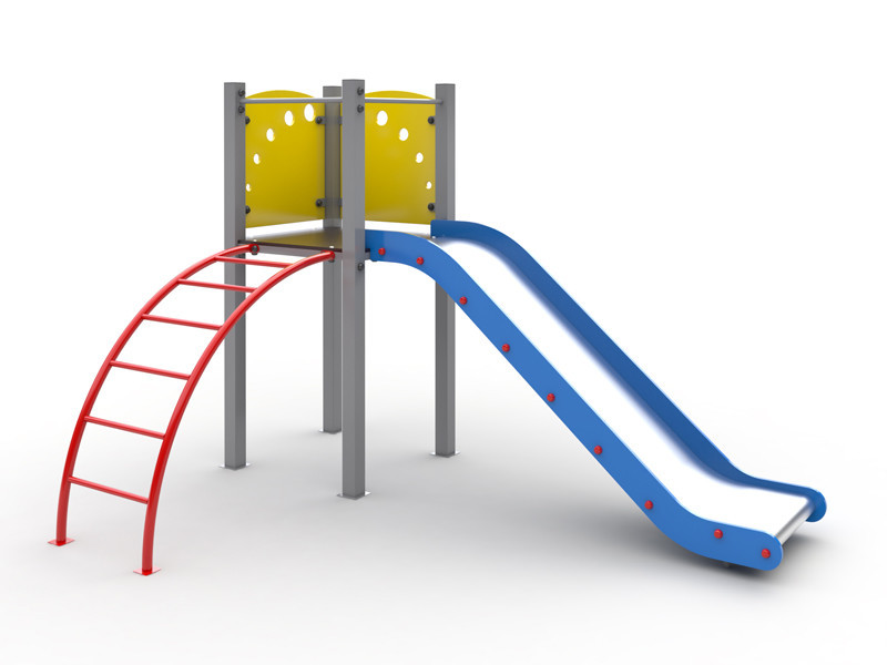 Горка представляет собой разборную конструкцию, которая состоит из каркаса, лестницы-дуги, ската из нержавеющей стали. Соединение элементов происходит при помощи оцинкованных болтов.