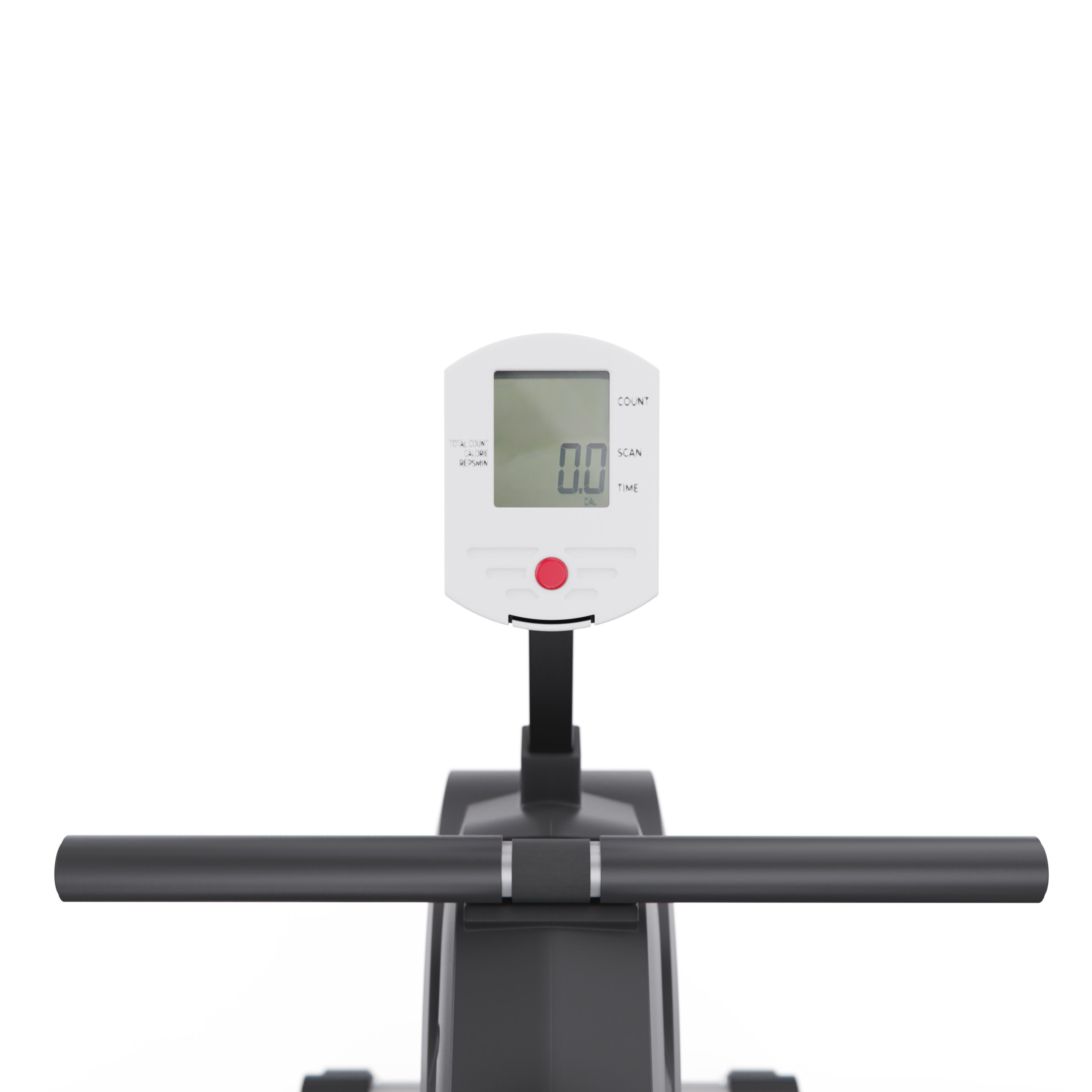 Тренажёр оснащён монохромным LCD-дисплеем, отображающим ключевые показатели тренировки — время, сканирование, количество гребков, калории, общий счетчик гребков. Это помогает отслеживать прогресс и контролировать результативность занятий. В комплект входят две батарейки типа AAA, необходимые для работы дисплея.