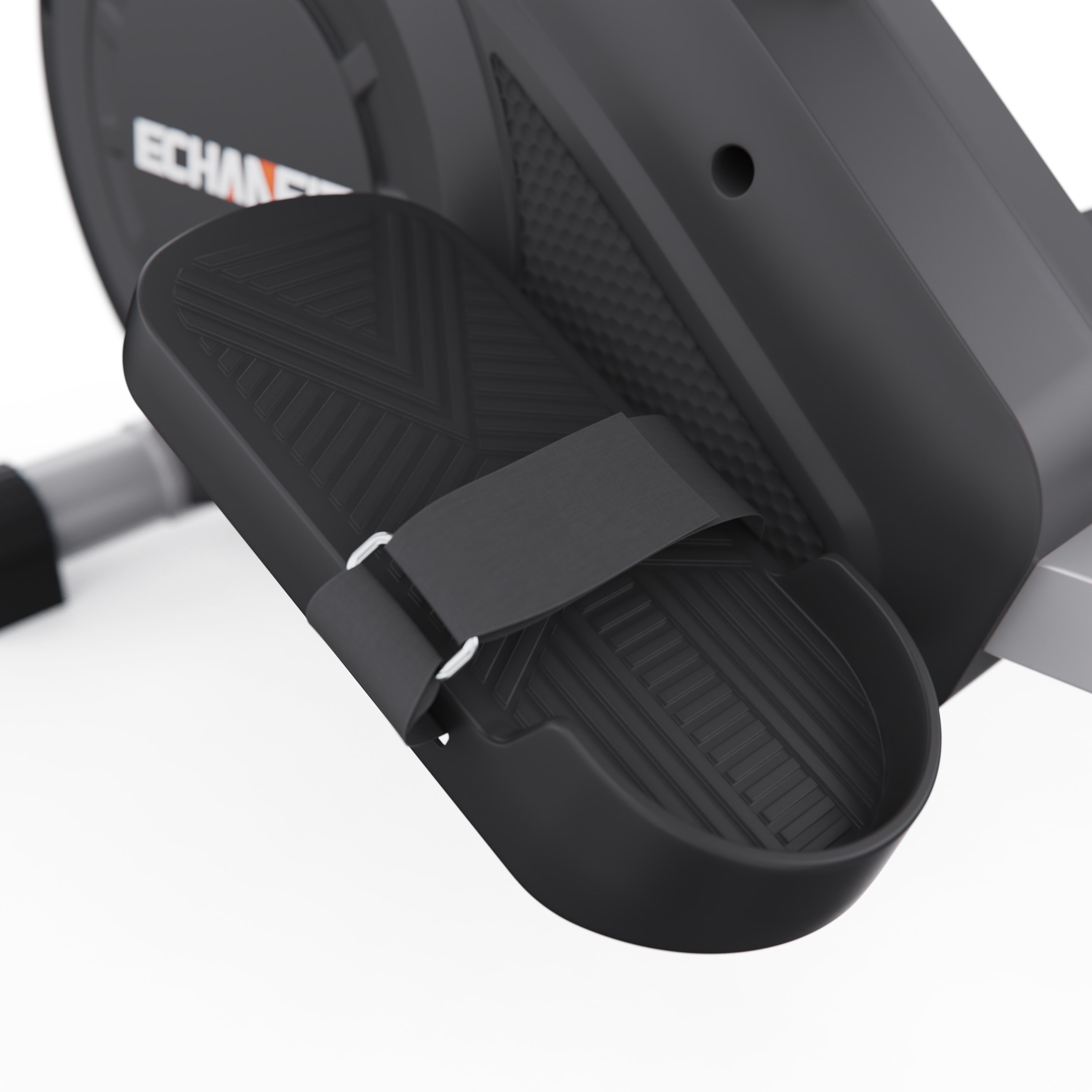 Рифленые педали с регулируемыми ремешками обеспечивают надежную фиксацию ног. Также есть компенсаторы неровности пола, которые гарантируют стабильность тренажера, а транспортировочные ролики обеспечивают лёгкое и удобное перемещение, позволяя без труда менять его расположение в помещении.