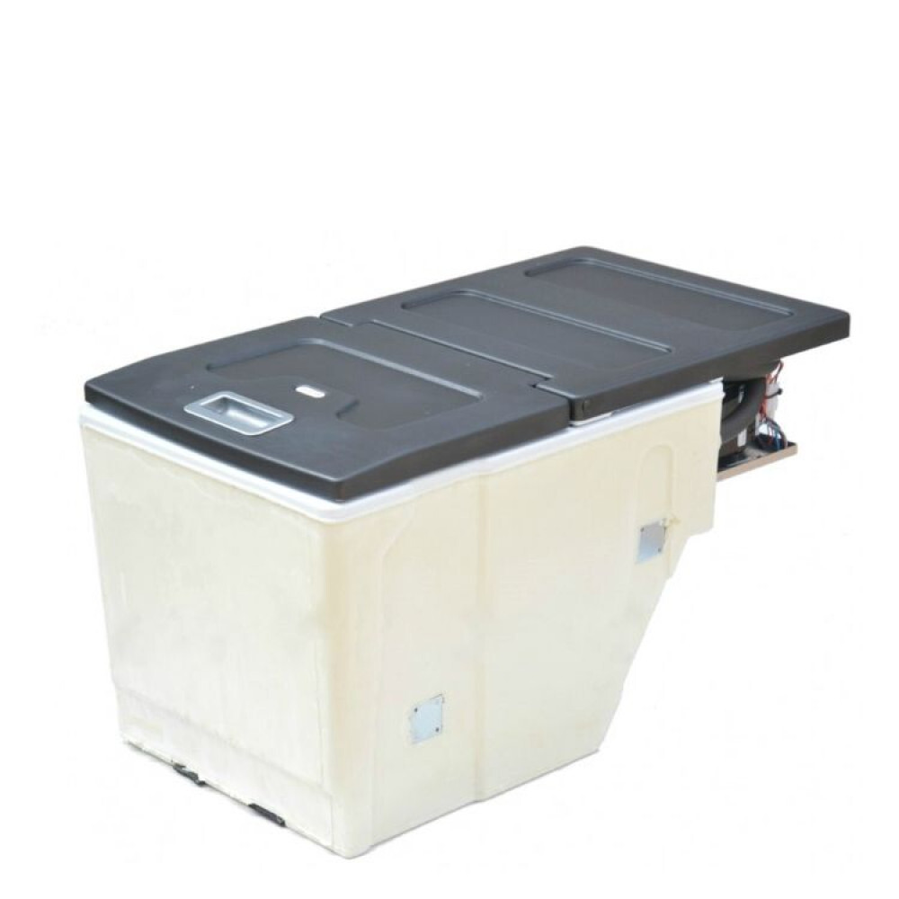 Эта компактная модель холодильника легко устанавливается даже в небольшой по размеру кабине. Холодильник оборудован специальной корзиной, которая позволяет осуществлять легкое и простое извлечение продуктов.