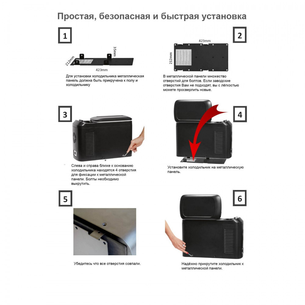 Диапазон работы автомобильного холодильника от +10 до -14 °С, берите с собой мороженое и освежающие напитки, салаты, фрукты и мясные изделия. Модель оснащена механической панелью управления. Универсальный дизайн подойдёт для автомобилей любого модельного ряда.