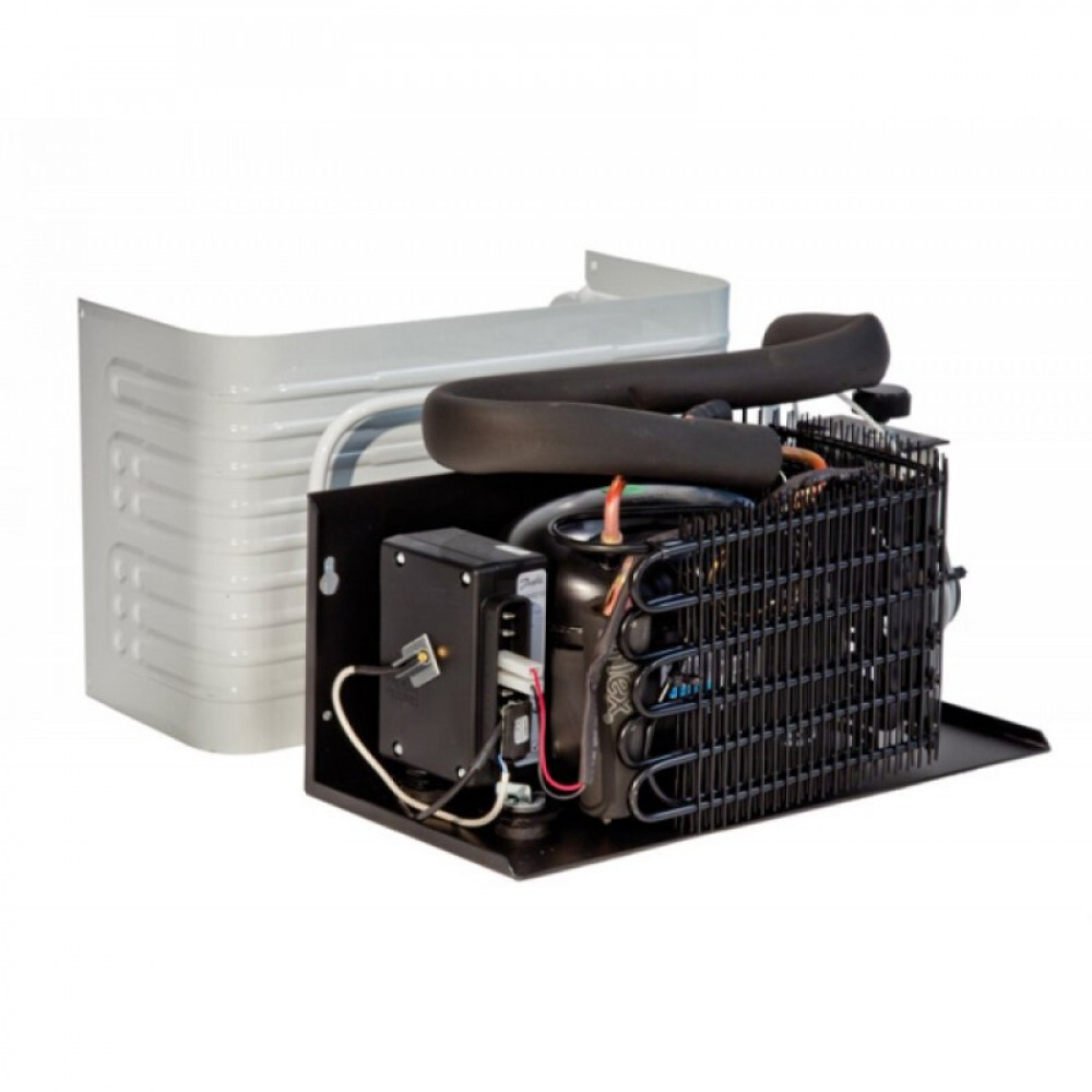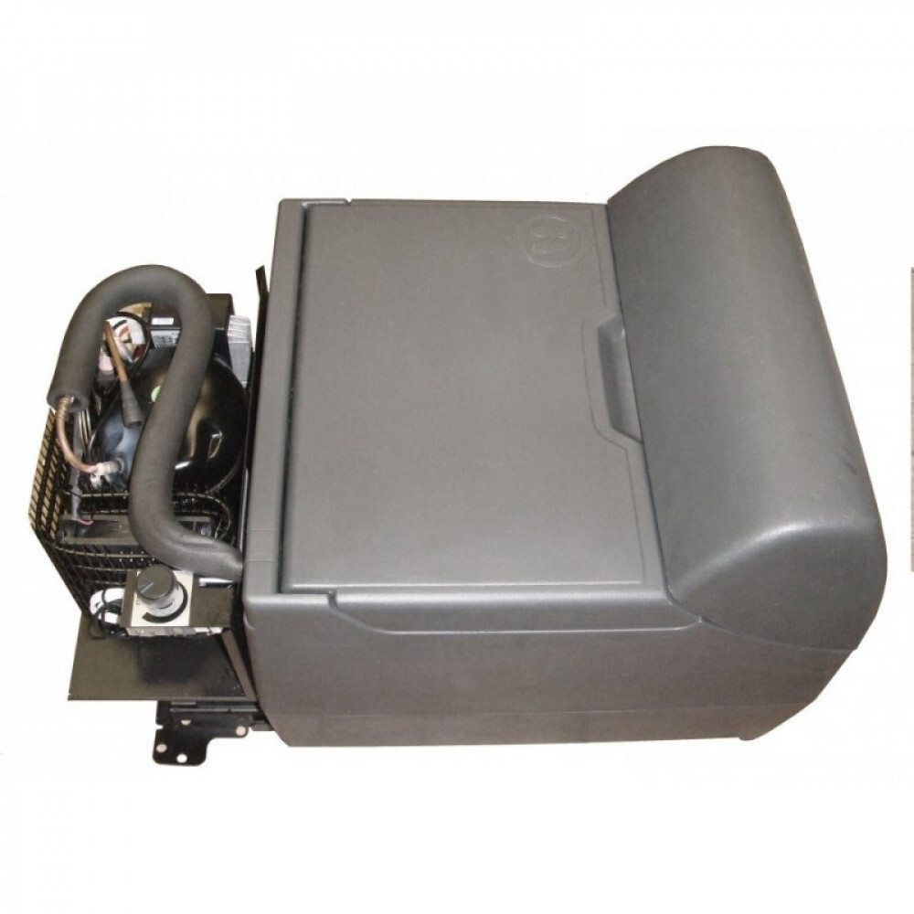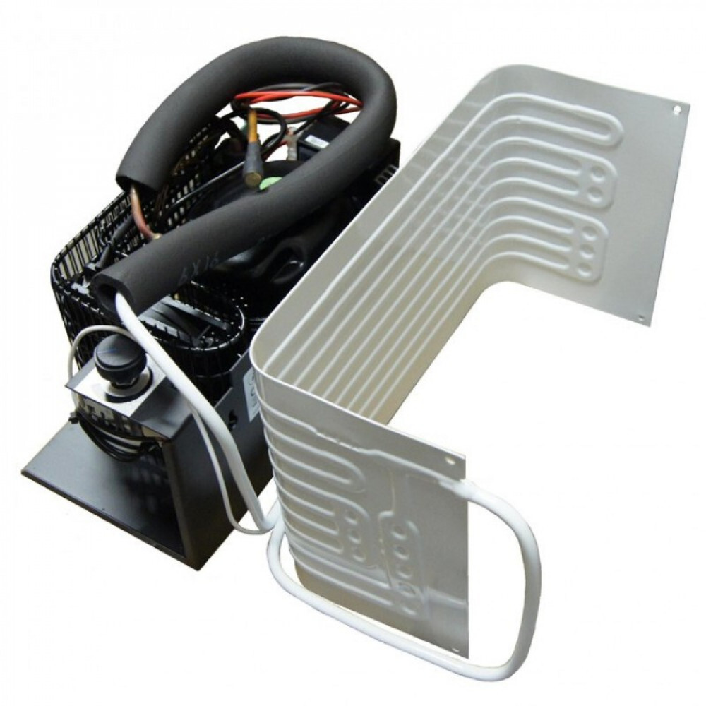 Данное охлаждающее устройство оборудовано испарителем, герметичным компрессором, вентилятором, конденсатором, датчиком опрокидывания, блоком регулирования, термостатом и терморегулятором. Данный агрегат можно легко и быстро превратить в качественный холодильник для автомобилей с помощью его установки в термический ящик, который находится к кабине машины. Представленный холодильный агрегат обладает весом всего в 8 кг и функционирует при наличии напряжения от 12 до 24В. Мощность работы составляет 60Вт, а хладагентом является R-134A. Это оборудование оснащено функцией, которая обеспечивает безопасное защитное отключение и осуществляет, поддержу установленной температуры в автоматическом режиме. При этом данный холодильный агрегат оснащен специальной системой от опрокидывания кабины и системой принудительного охлаждения Устройство может функционировать с температурой от -2 до +10 градусов.