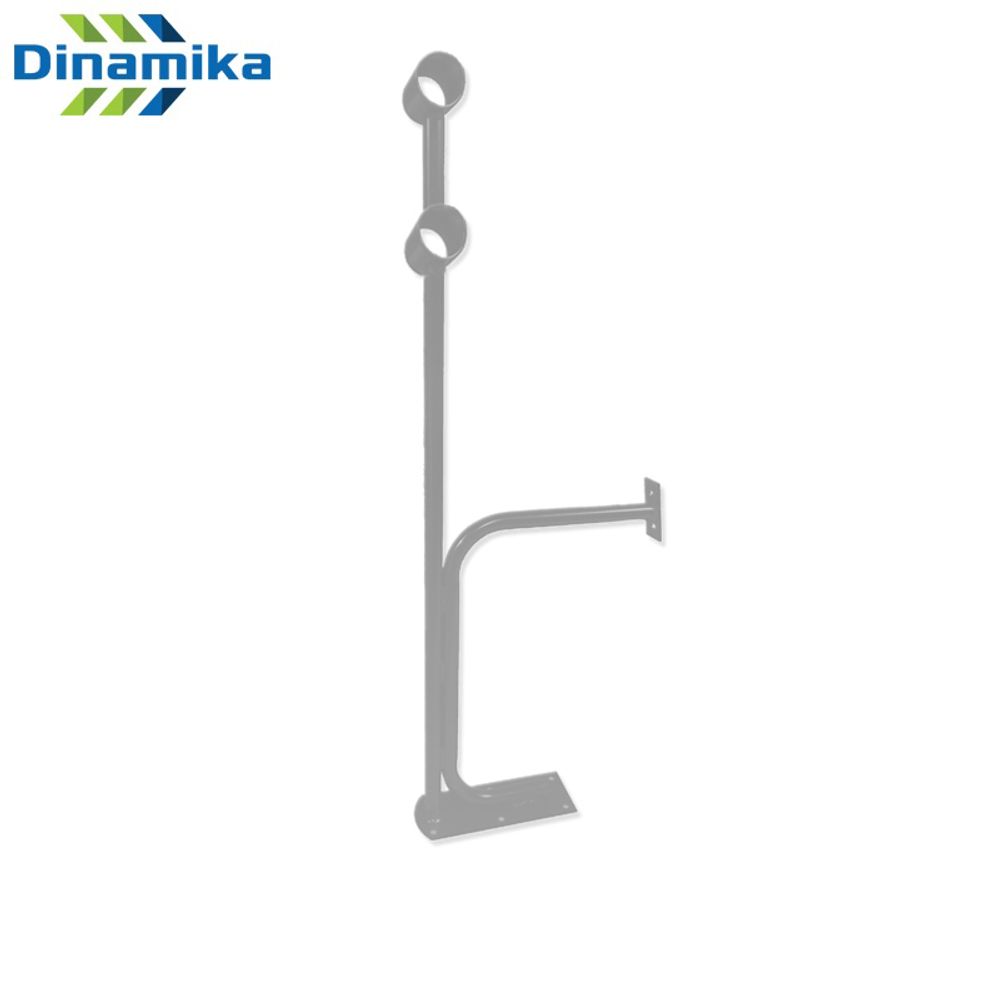 Хореографический кронштейн напольно-пристенный двухрядный представляет собой цельносварную конструкцию, состоящую из стойки кронштейна, пристенного кронштейна, держателей поручней и опорной пластины изготовленных из стали. Сварные швы хореографических стоек тщательно обработаны и зачищены. Поверхность изделия окрашена порошковым напылением в электростатическом поле. В комплекте с кронштейном идут саморезы для крепления жерди.