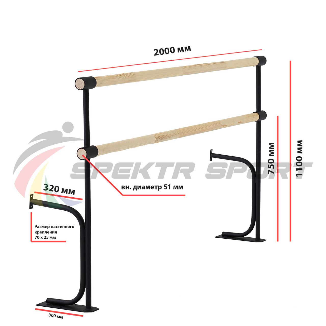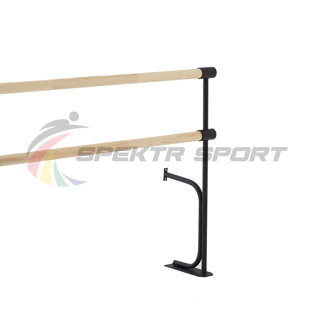 Хореографический станок крепится к стене и полу, гарантируя устойчивое положение оборудования и исключает его неустойчивость во время упражнений. За счет двухуровневого расположения поручней, данный станок будет удобен, как взрослым, так и детям. Данная модель станка популярна для размещения в танцевальных студиях.