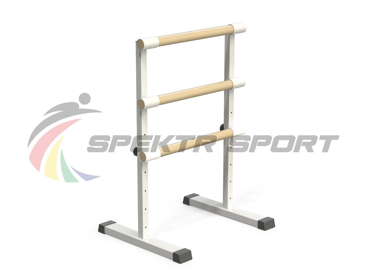Высота установки нижнего поручня регулируемая 130, 230, 330, 430, 530, 630 мм от пола до верхнего края.