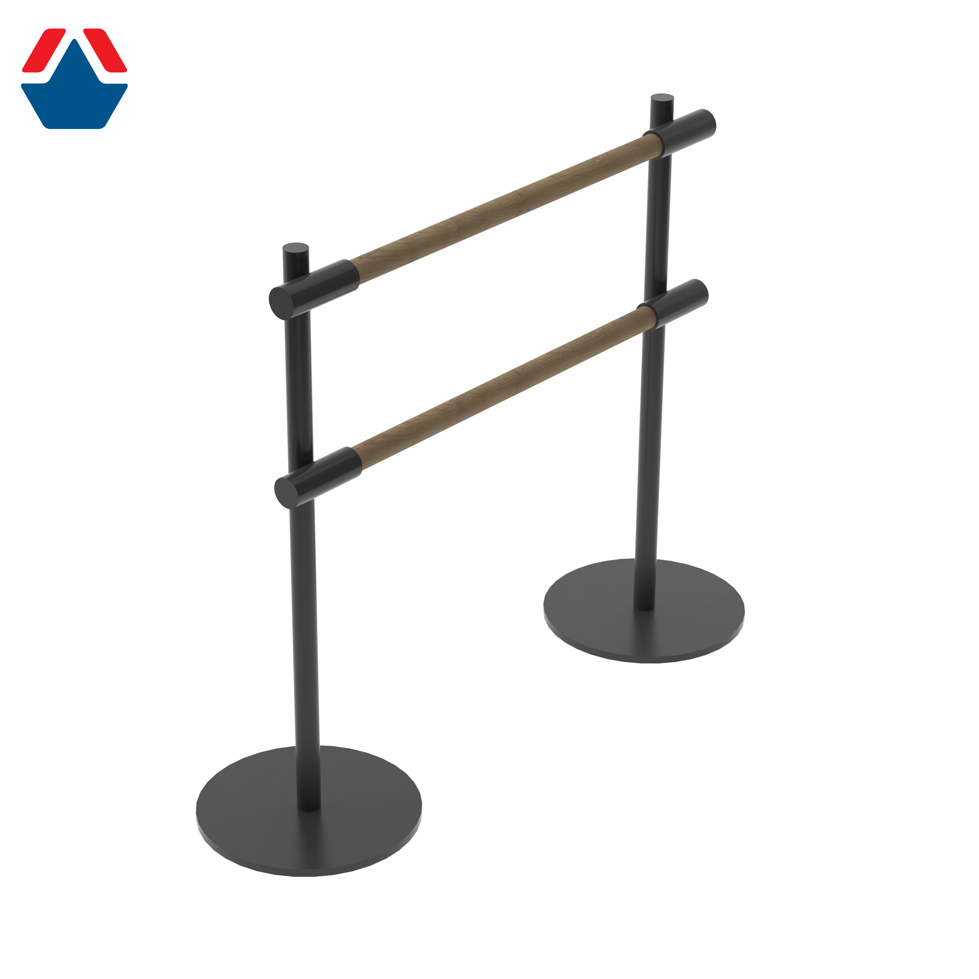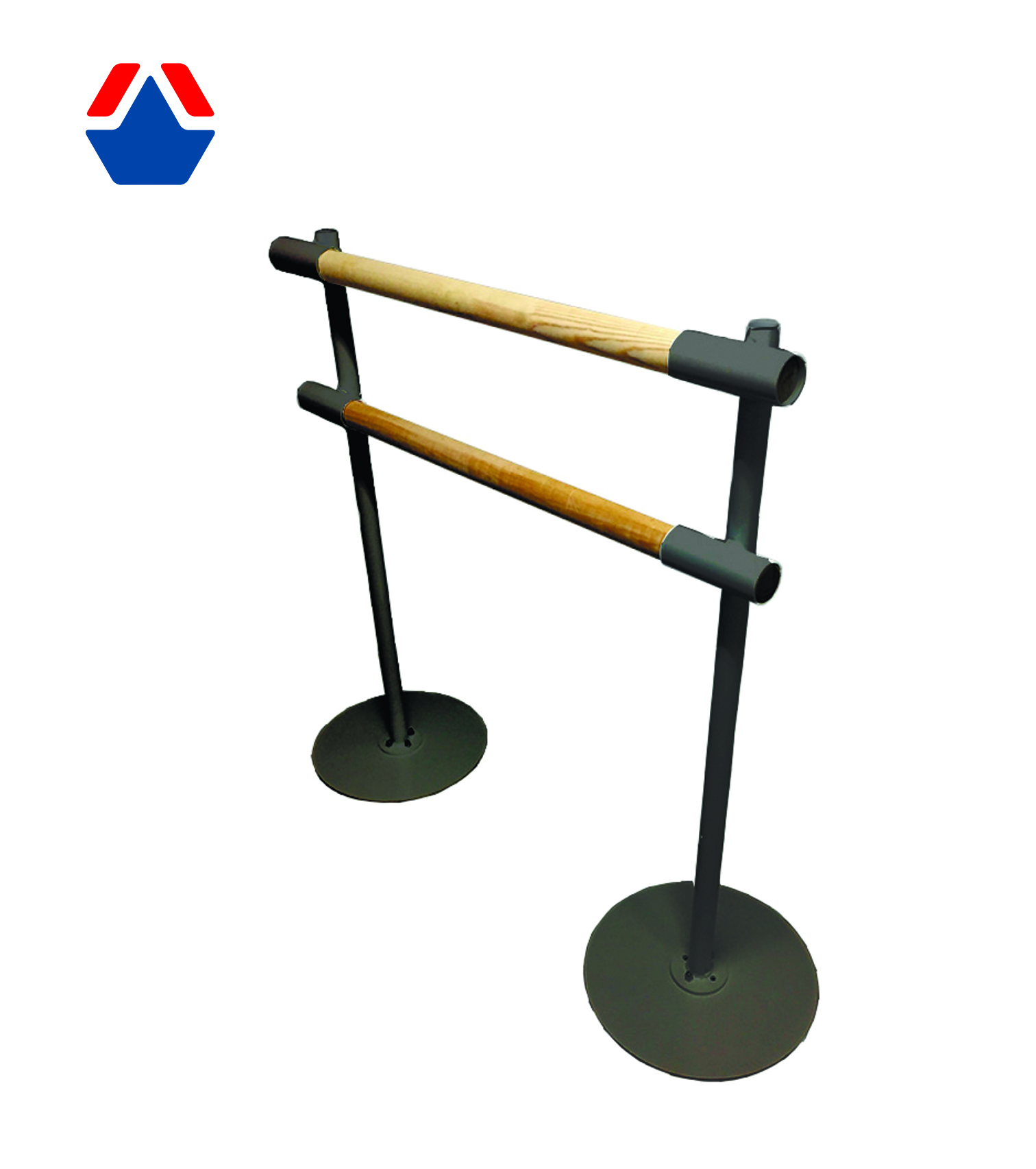 Хореографический станок мобильный двухрядный Рондо представляет собой сборную конструкцию, состоящую из стойки кронштейна с держателями поручня изготовленных из стальной трубы и опорного основания изготовленного из стального листа.