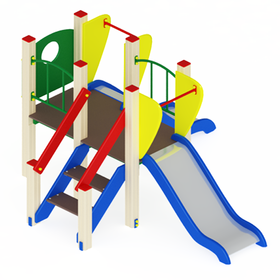 Детское игровое оборудование предназначено для детей от 5 до 12 лет и выполняет следующие функции: создают условия, обеспечивающие физическое развитие ребенка, развивающие координацию движений, преодоление страха высоты, ловкость и смелость, чувство коллективизма в массовых играх. Скат горки шириной 540мм, высота стартовой площадки горки 750мм, выполнен из нержавеющей стали толщиной 1,5мм состоит из цельного листа, борта выполнены из влагостойкой фанеры толщиной 27мм, кромки фанеры тщательно шлифованы, борта окрашены в синий цвет. Опорный каркас горки выполнен из профиля 40х25мм и труб диаметром 32мм. Стартовая площадка горки ограждена стальной перекладиной из трубы диаметром 27мм. Размер горки в плане 1350х540х750мм.