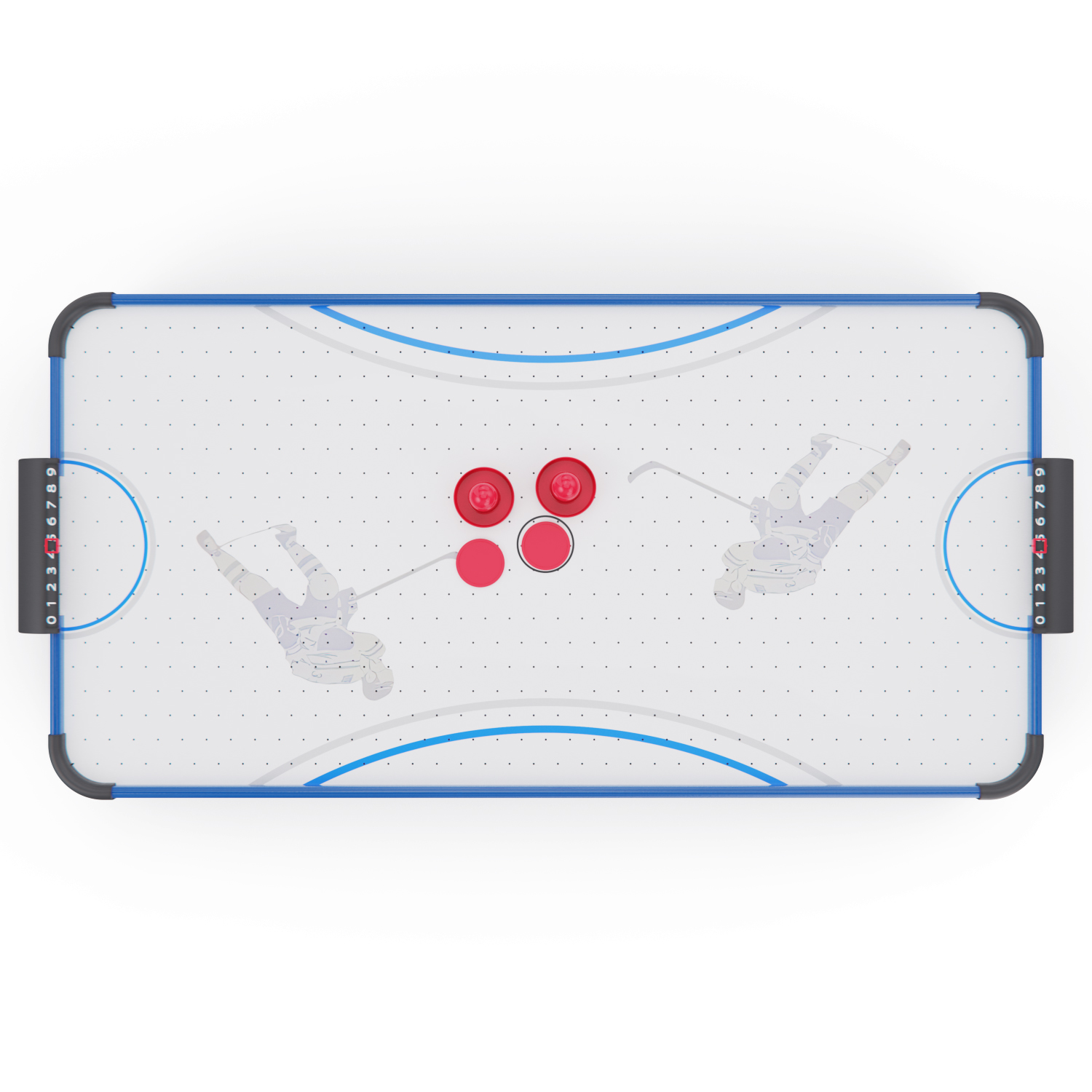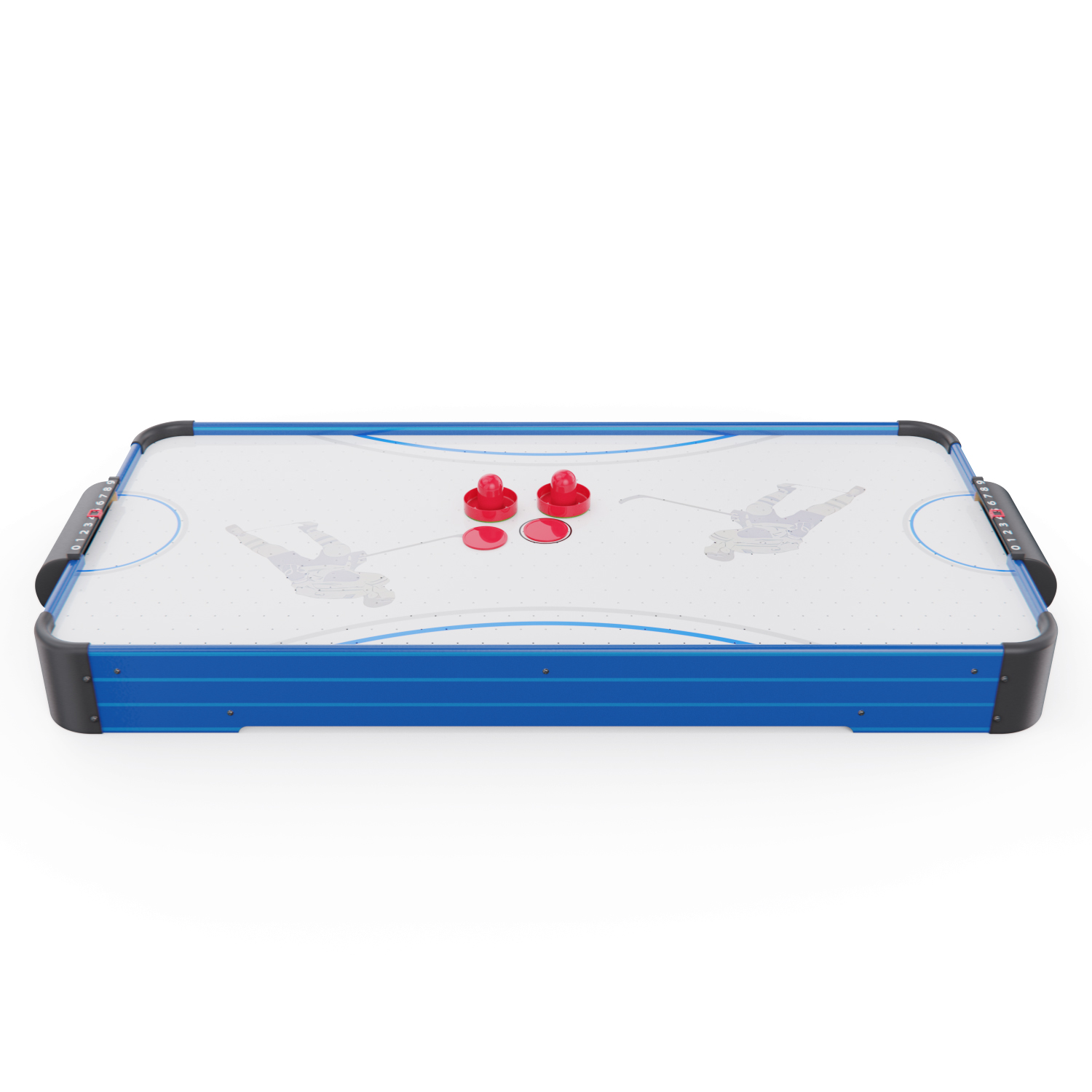 Игровой стол оснащён вентилятором на 220V, создающим воздушную подушку под шайбой. Это обеспечивает лёгкое и быстрое скольжение по полю, делая игру более захватывающей и реалистичной.