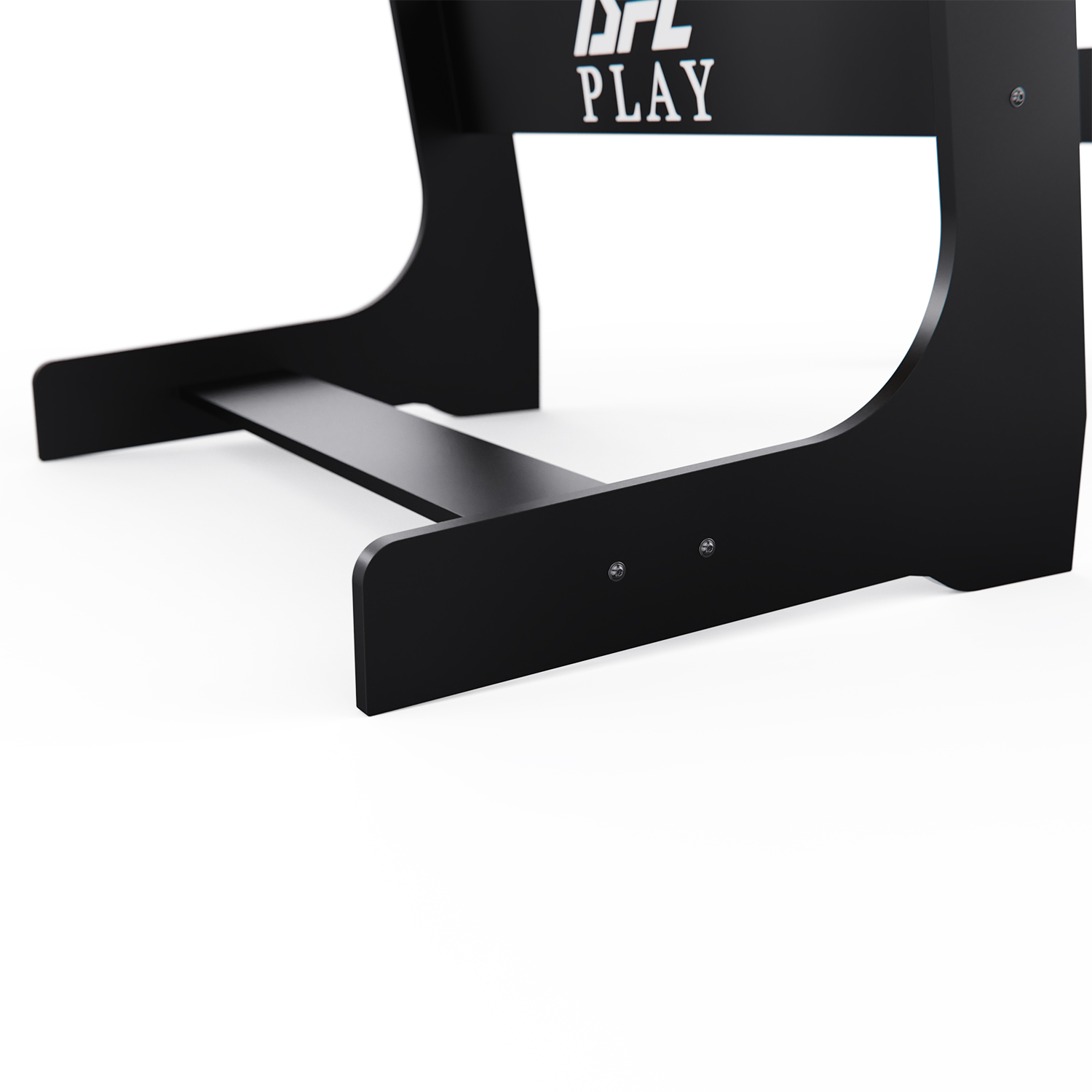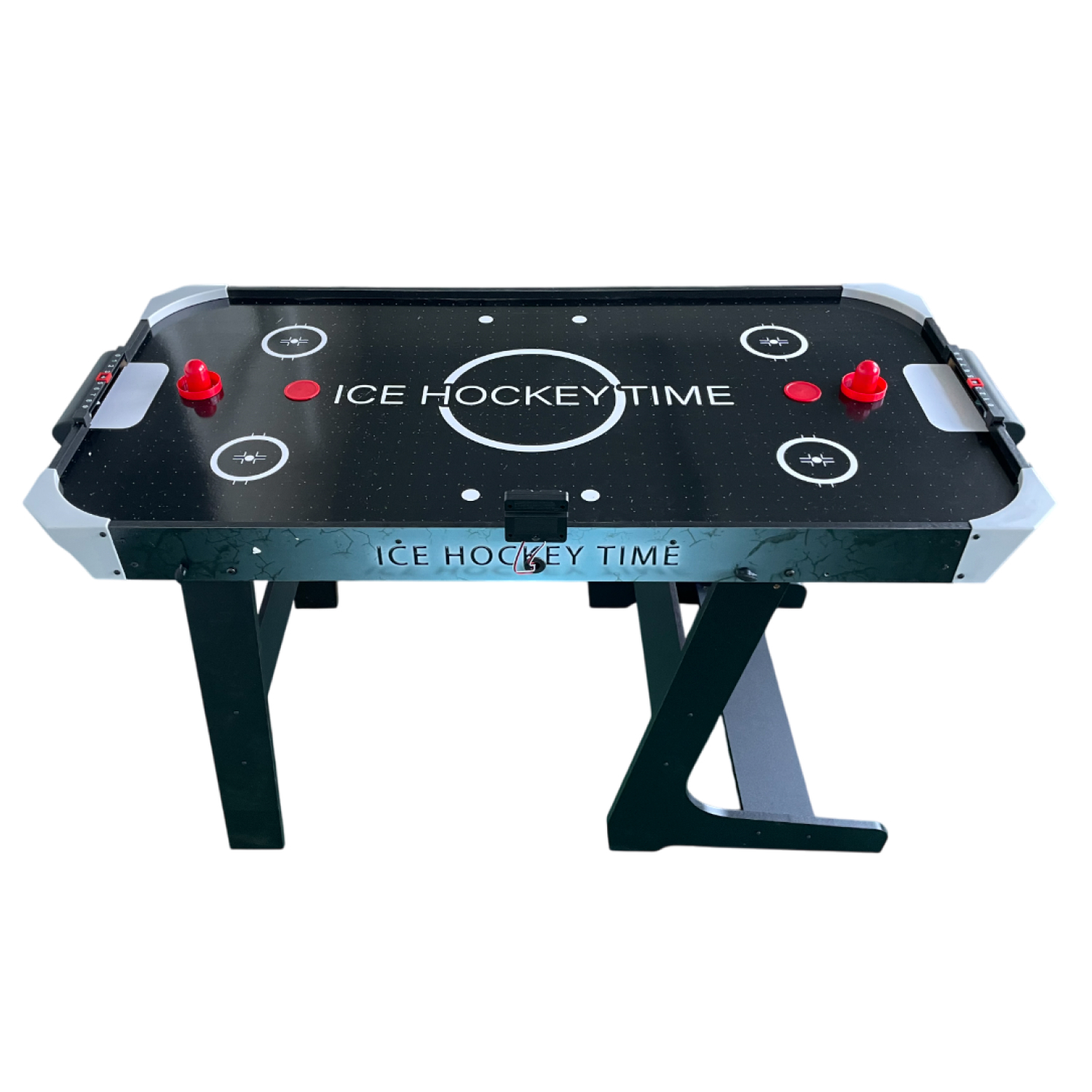 Игровое поле стола выполнено из качественного МДФ с бумажным покрытием, что гарантирует гладкую поверхность для легкого скольжения шайбы. Толщина поля 3 мм, бортики высотой 15,5 мм и толщиной 12 мм защищают шайбу от вылета, обеспечивая комфорт и безопасность игры. Основание стола изготовлено из МДФ с ПВХ-покрытием, что делает конструкцию долговечной и устойчивой к износу.