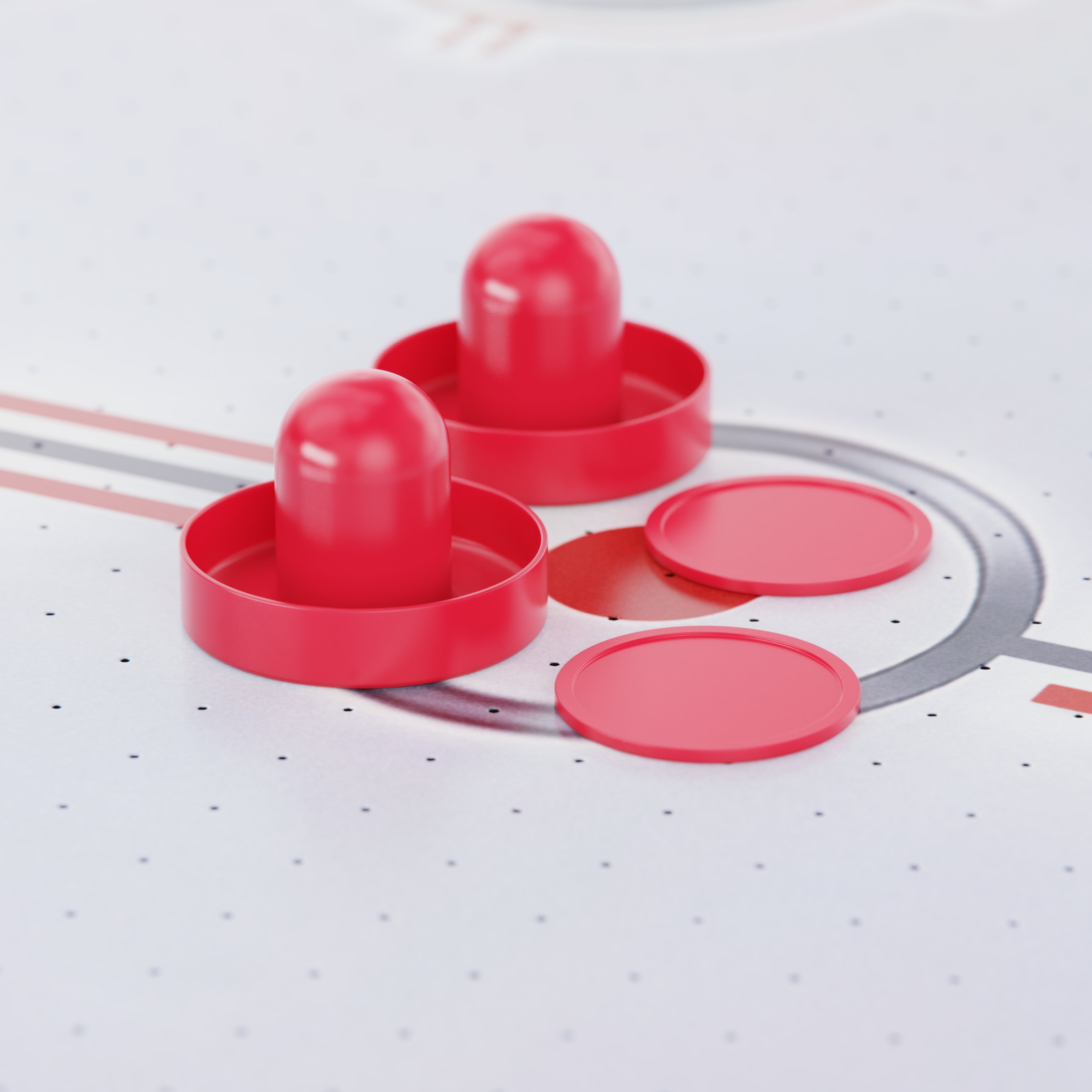 Игровое поле стола выполнено из качественного МДФ с гладким покрытием, что гарантирует гладкую поверхность для легкого скольжения шайбы. Толщина поля 3 мм, бортики высотой 15 мм и толщиной 12 мм защищают шайбу от вылета, обеспечивая комфорт и безопасность игры.