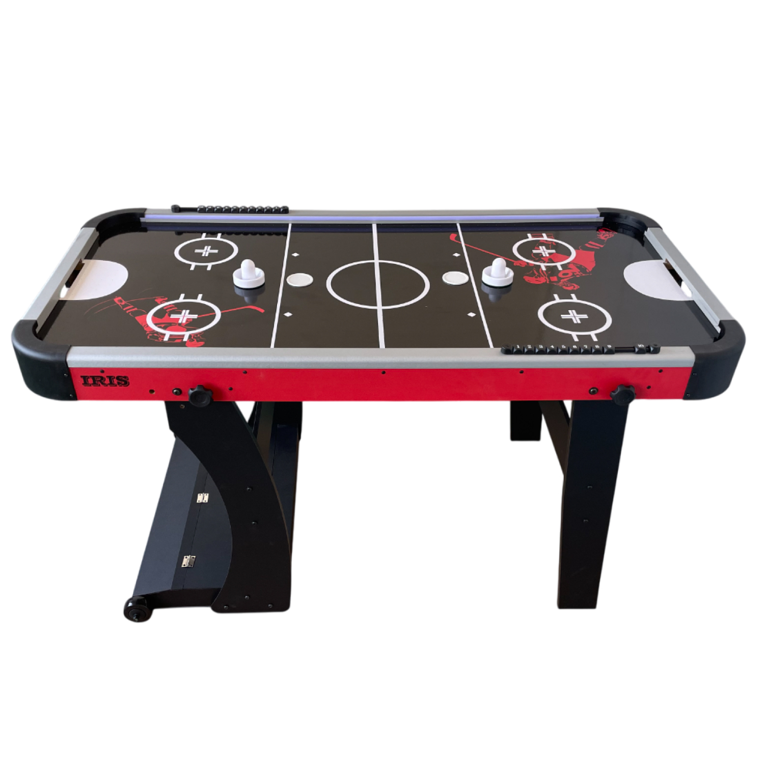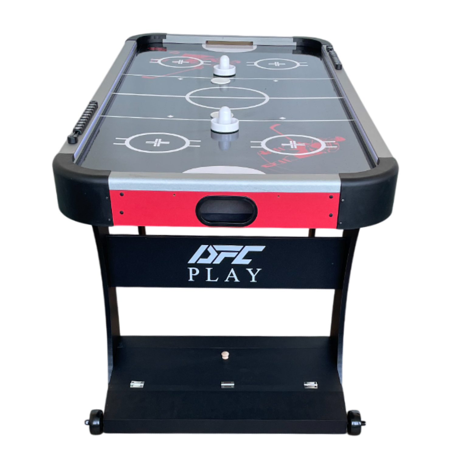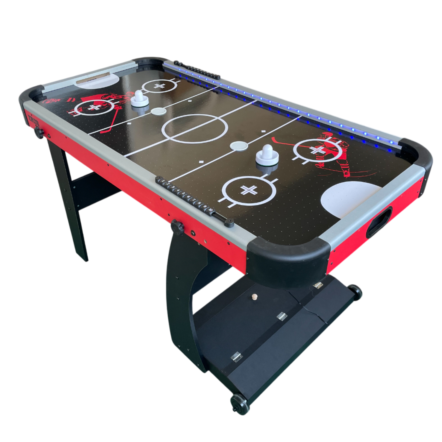 Благодаря удобным размерам (152,5 x 76 x 81 см) стол идеально подходит для домашнего использования, а складная конструкция стола особенно удобна для тех, кто хочет экономить место — стол можно легко сложить и убрать с помощью транспортировочных роликов до следующей игры. Хоккей станет отличным вариантом для семейных вечеров, дружеских турниров и веселого досуга.