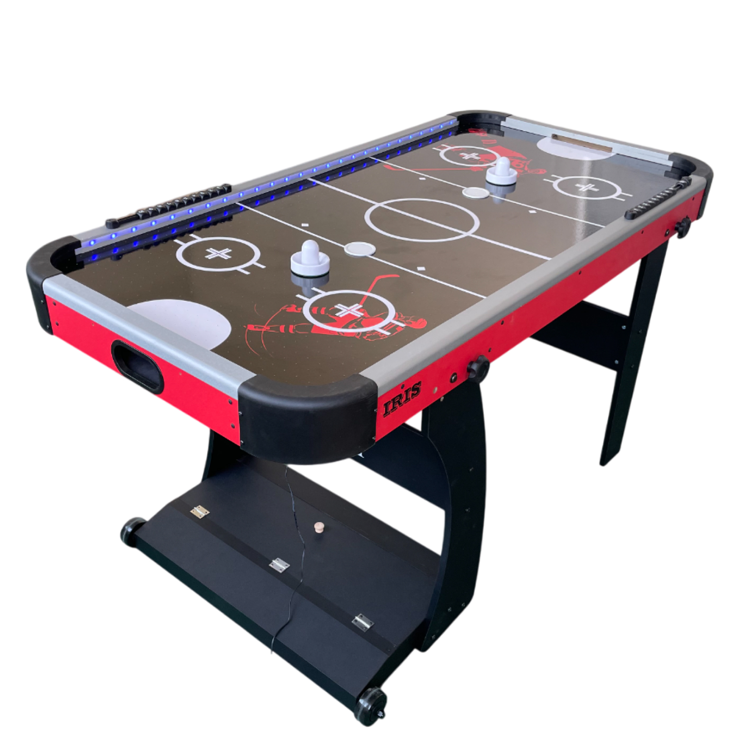 Встроенный вентилятор на 220В создает воздушный поток, который позволяет шайбе легко и быстро скользить по поверхности. Это делает игру максимально реалистичной и динамичной. Эффектная подсветка игрового стола создает атмосферу настоящего аркадного зала и делает игру еще более захватывающей, особенно в темное время суток.