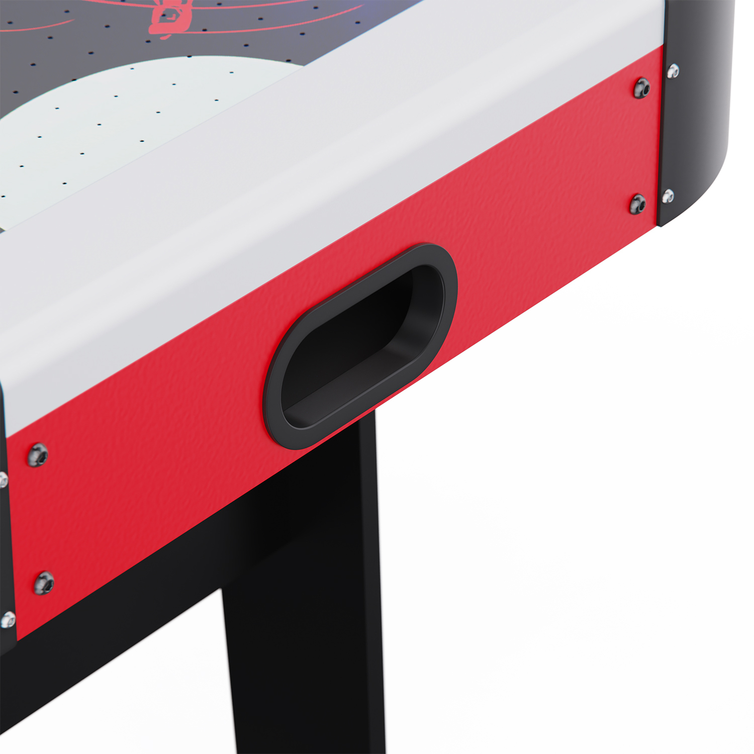 Игровое поле выполнено из прочного МДФ с толщиной 3 мм, что гарантирует долговечность и стабильную поверхность для катания шайбы. Бортики высотой 15 мм и толщиной 9 мм удерживают шайбу на поле и делают игру комфортной и безопасной. Ножки высотой 76 см обеспечивают устойчивость даже при интенсивных матчах, а прочное основание с ПВХ-покрытием надежно выдерживает нагрузку.