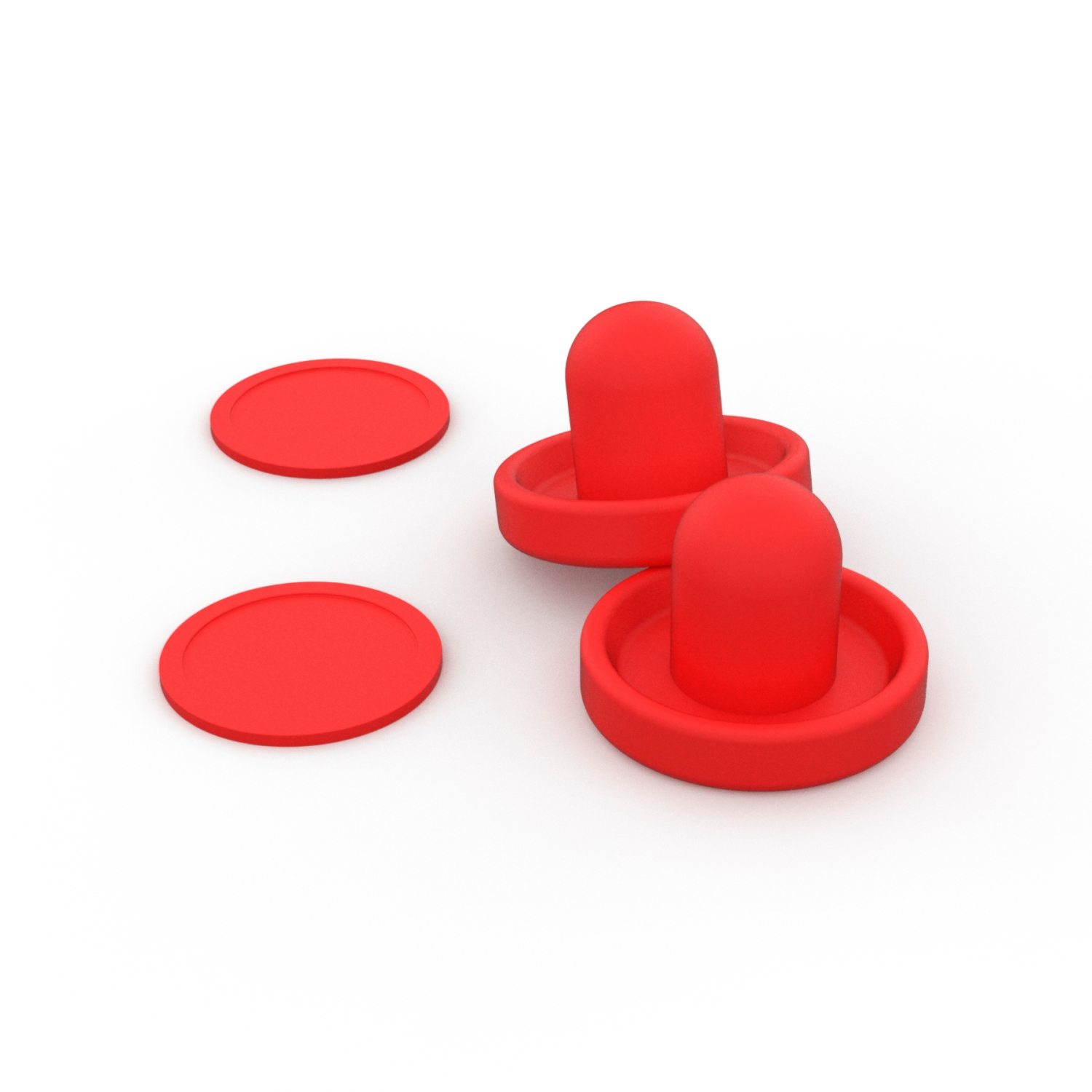 Стол комплектуется набором аксессуаров: 2 биты и 2 шайбы красного цвета. Размер биты 60 мм, размер шайбы 53 мм.