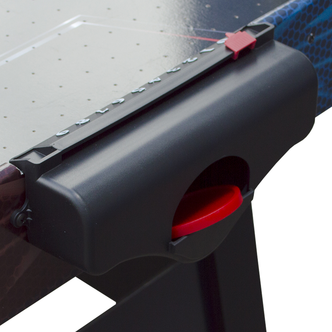 Стол для аэрохоккея Fire & Ice отлично подходит для домашнего использования и приносит еще больше удовольствия при игре в темноте! Красная команда «Огонь» против синей команды «Лед».
